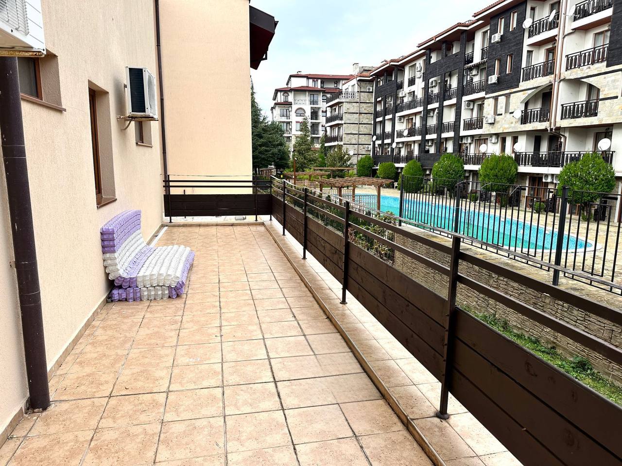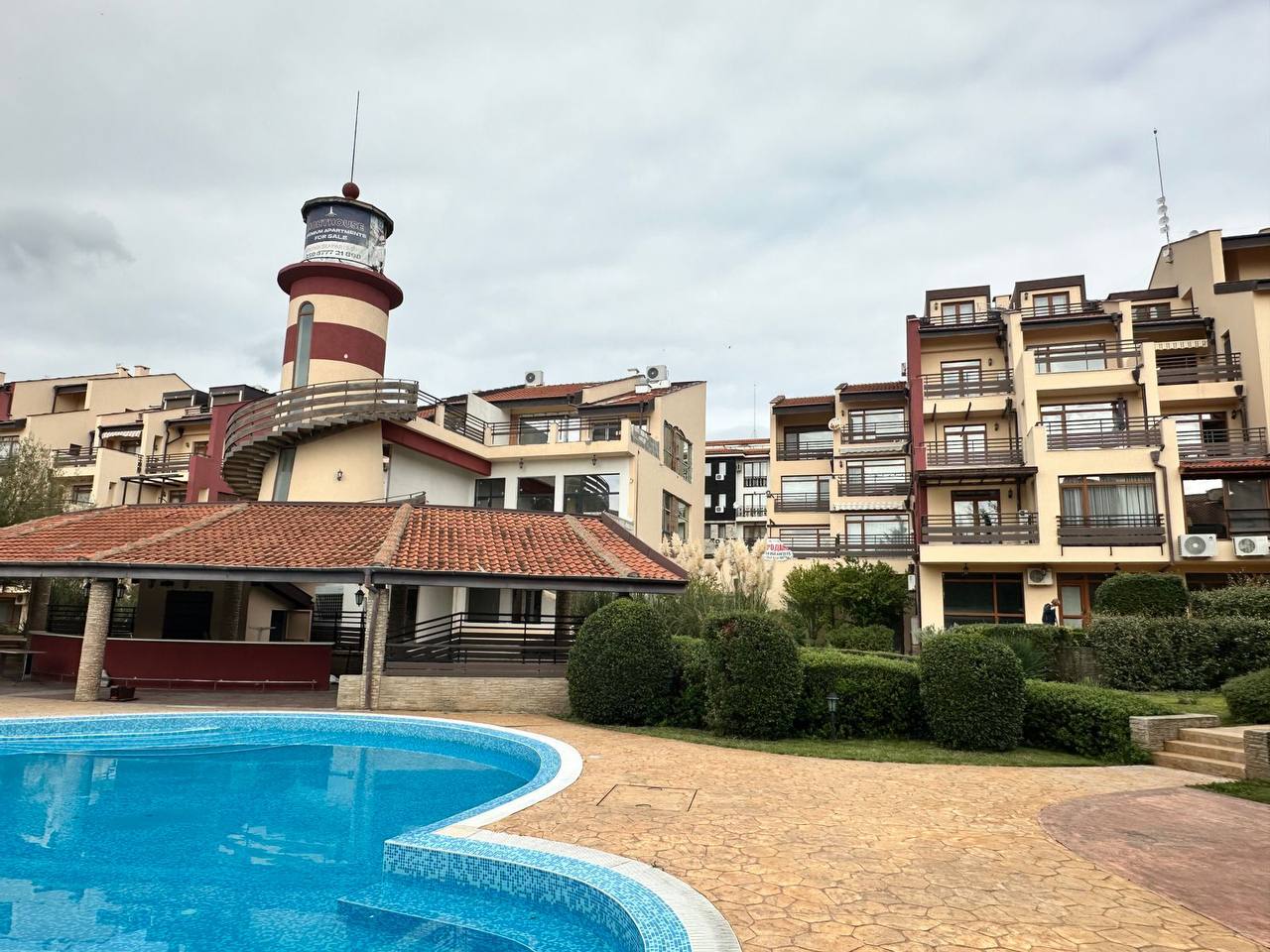 Morski Far — это ухоженный комплекс закрытого типа с благоустроенной территорией. Для удобства владельцев предусмотрены бассейн, зона отдыха, парковка и круглосуточная охрана. Территория комплекса поддерживается в отличном состоянии, а низкая такса обслуживания — всего 10 евро за м² в год — позволяет наслаждаться всеми преимуществами без значительных расходов.