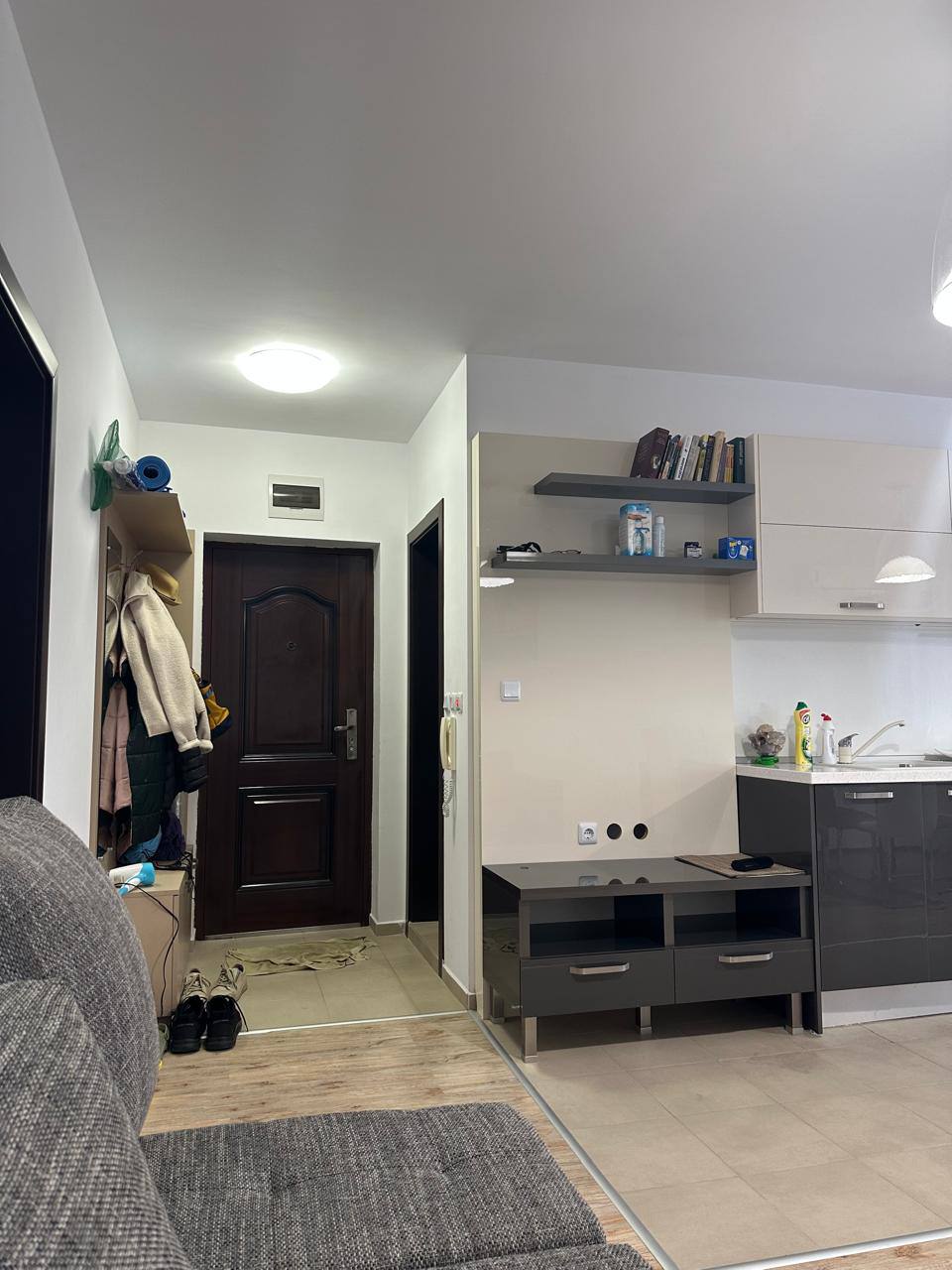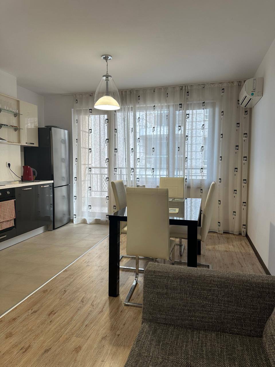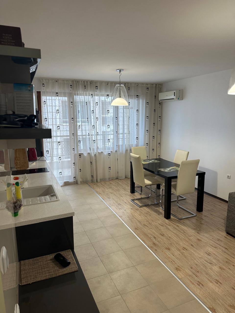 Апартамент отличается функциональной планировкой и прекрасно подходит для постоянного проживания. Он включает просторную гостиную с кухонной зоной, отдельную спальню, ванную комнату и балкон с частичным видом на море. Большие окна наполняют комнаты светом, создавая ощущение простора и гармонии. Благодаря удачному расположению на четвёртом этаже, из квартиры открываются приятные виды, а в помещении всегда достаточно естественного освещения.