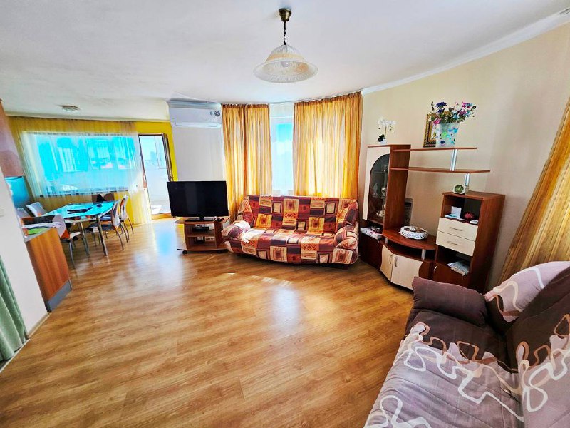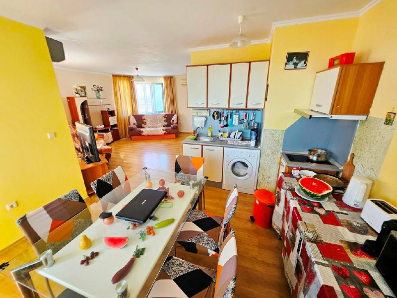 Светлая, просторная квартира с видом на бассейн в ухоженном комплексе — идеальный вариант для тех, кто ищет комфортное жильё у моря на Солнечном берегу.