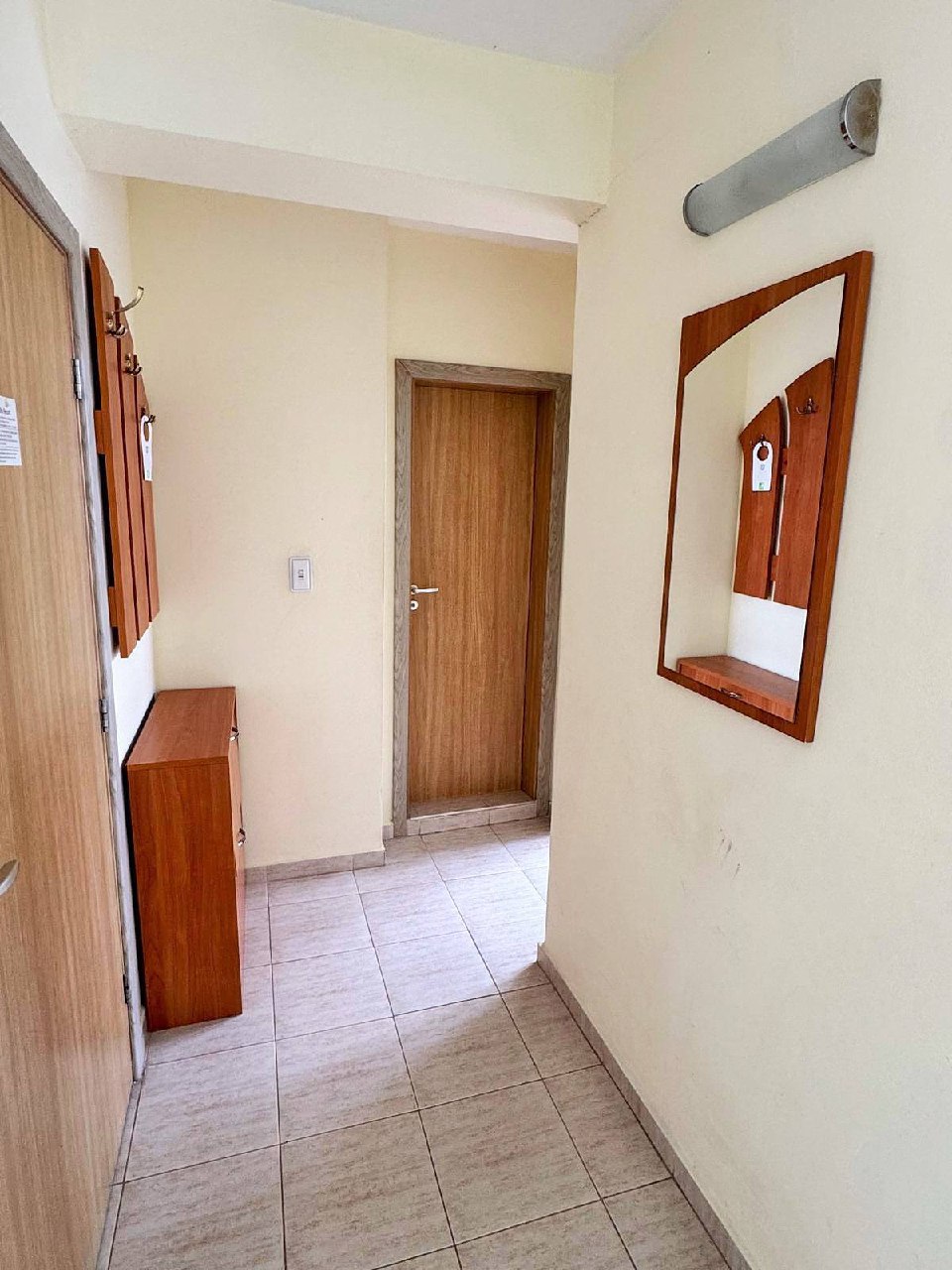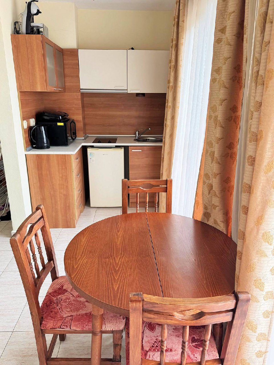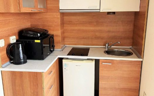 Квартира находится на последнем этаже здания и включает гостиную с кухонной зоной и отдельную спальню. Планировка квартиры продумана для комфортного проживания и удобна как для семьи, так и для арендаторов. Окна выходят на внутренний бассейн комплекса, что обеспечивает приятный вид и дополнительный комфорт. Такой формат квартиры для жизни или аренды востребован на рынке недвижимости в Болгарии благодаря своей функциональности и расположению.