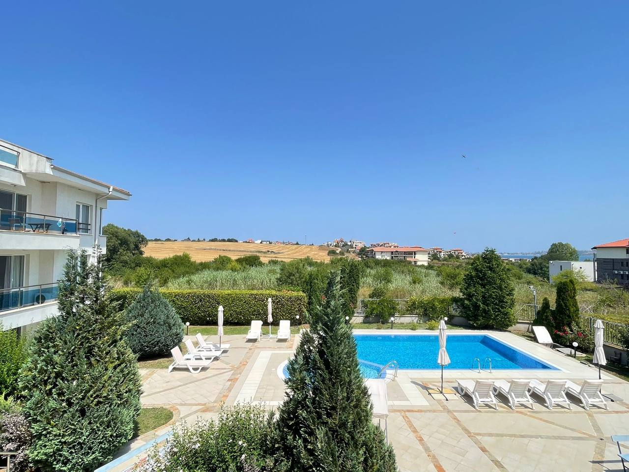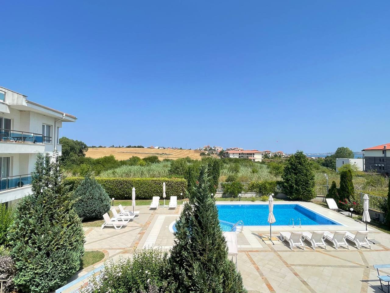 Синята Дъга, Черноморец — двухкомнатная квартира площадью 55 м² с видом на море, на 2 этаже, в комплексе с бассейном и ухоженной территорией. Отличный выбор для жизни, отдыха и инвестиций в недвижимость у болгарского моря.