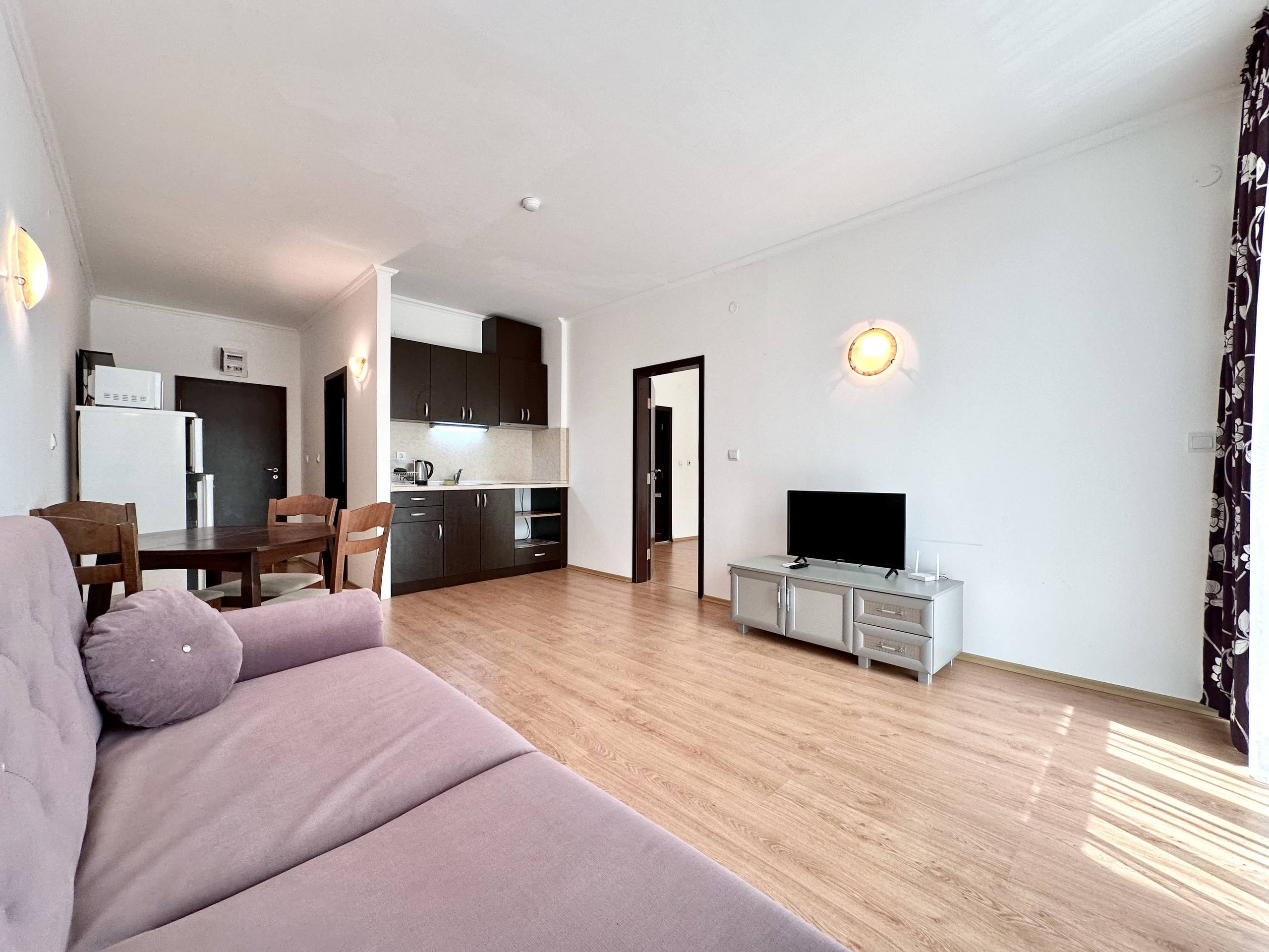 Продается просторная двухкомнатная квартира в комплексе Babylon, расположенном в центре Солнечного Берега. Этот объект идеально подходит для жизни или аренды у моря, сочетая комфорт и выгодное инвестирование.