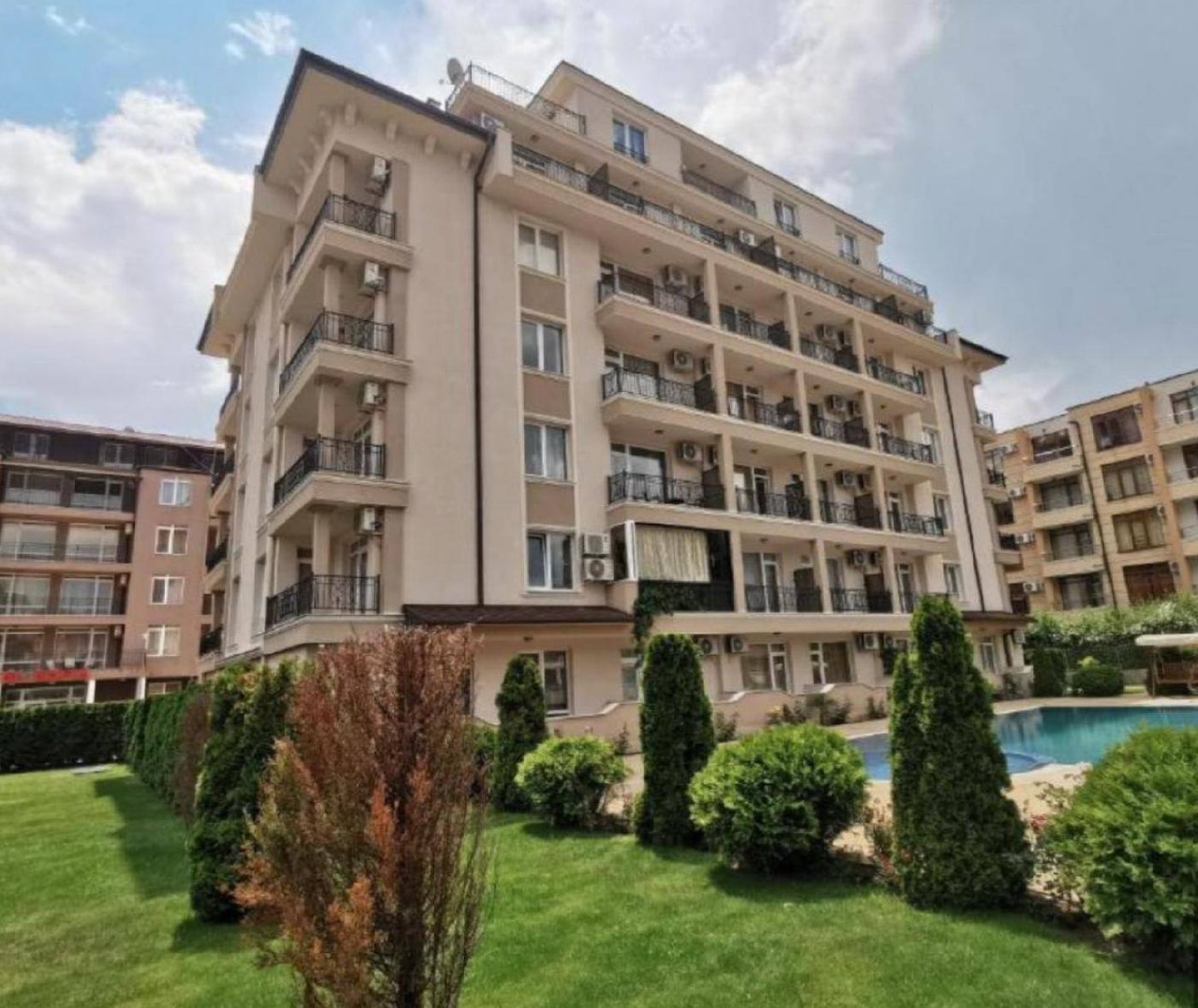 Солнечный Берег — востребованный курортный город, расположенный близко к морю. Комплекс находится в удобной части города с развитой инфраструктурой в пешей доступности, что делает его привлекательным для постоянного проживания и отдыха.