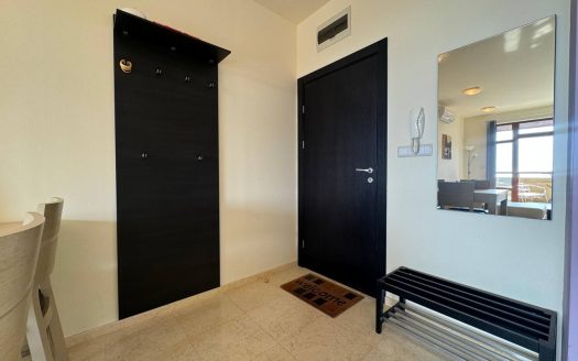 Квартира состоит из просторной гостиной с кухонной зоной, отдельной спальни, прихожей, санузла и балкона. Благодаря грамотной планировке жилье выглядит просторным и удобным для жизни. Балкон с панорамным видом на море и бассейн — идеальное место для утреннего кофе или вечернего отдыха. Большие окна наполняют квартиру естественным светом и создают уютную атмосферу.
