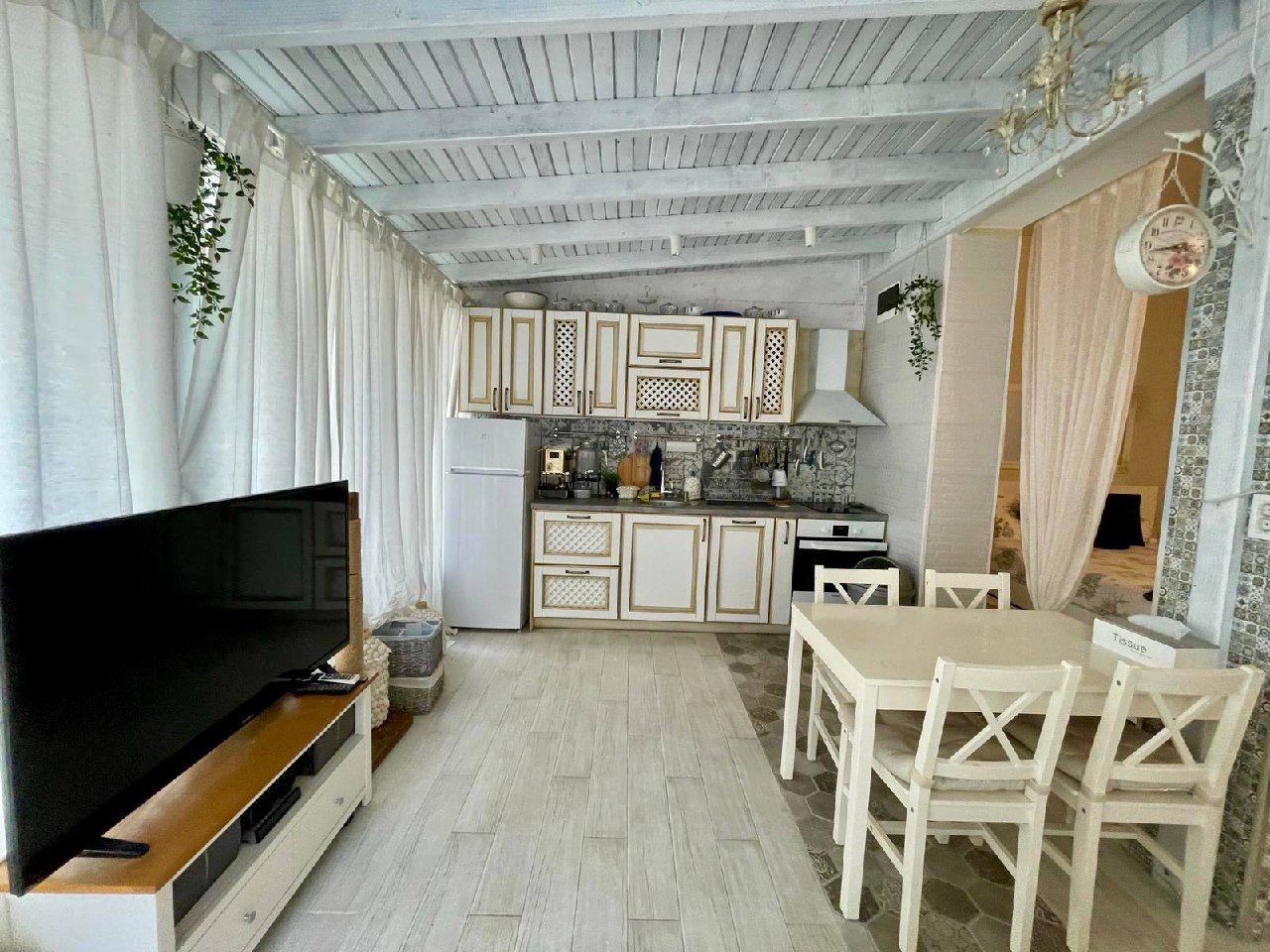 The apartment belongs to the four-room format - it has three full bedrooms, a large living area and a convenient kitchen, which provides a high level of comfort for a family or for those who appreciate extra space. This size allows you to easily zone the rooms, place the necessary furniture and appliances, organize work, play or guest areas.