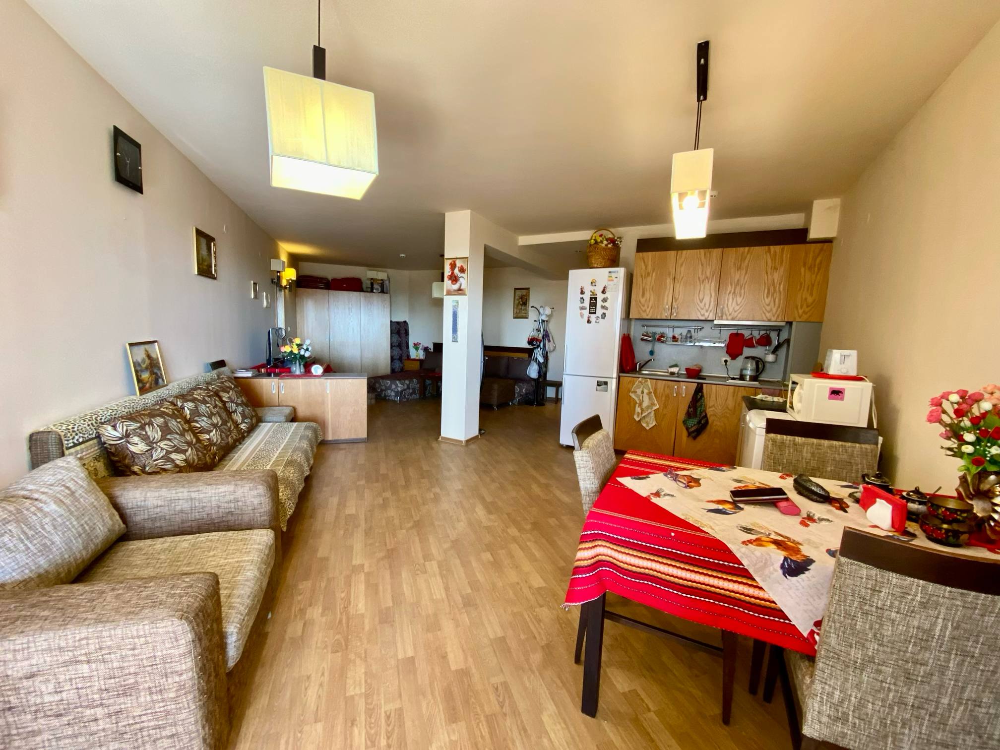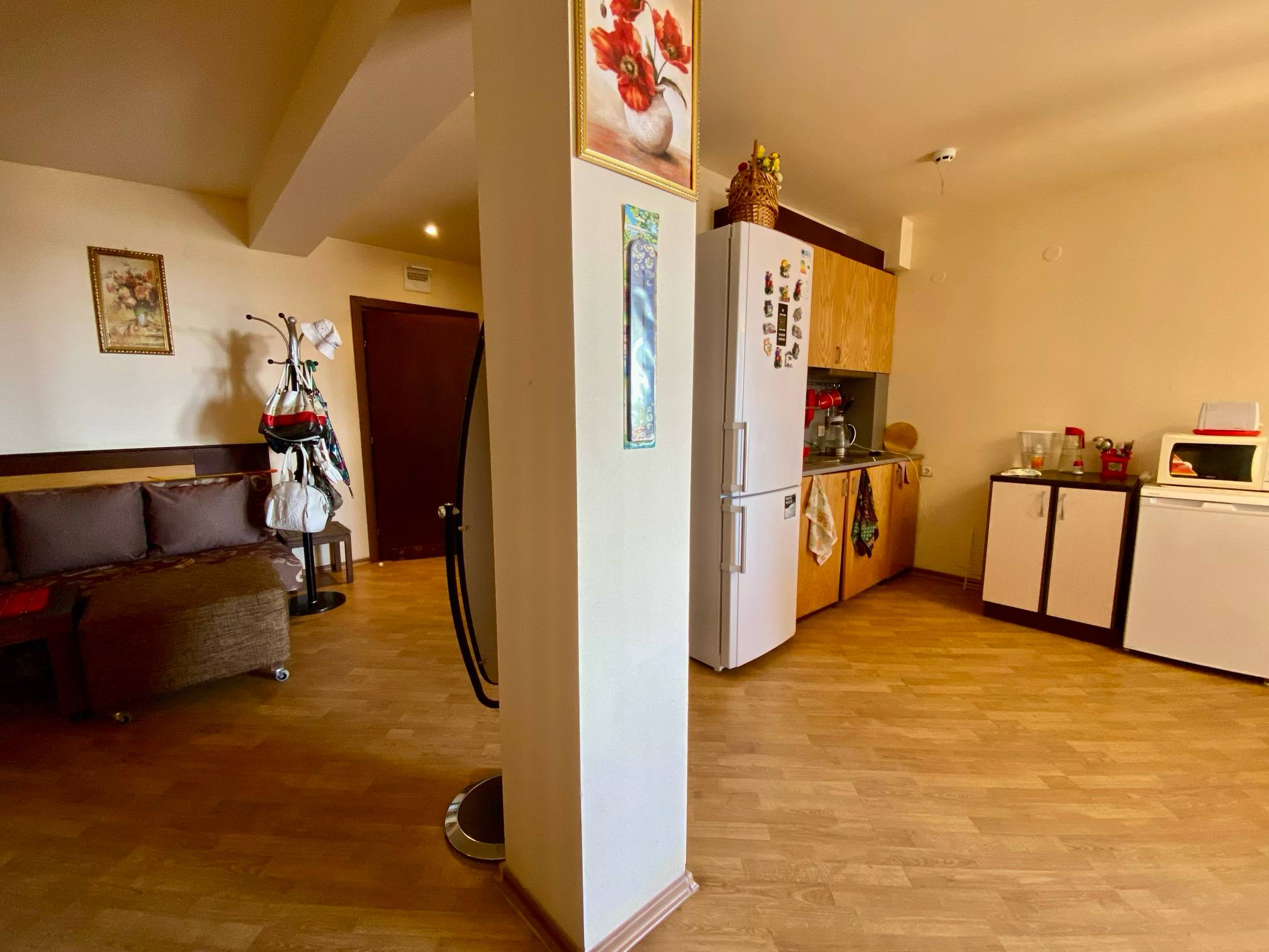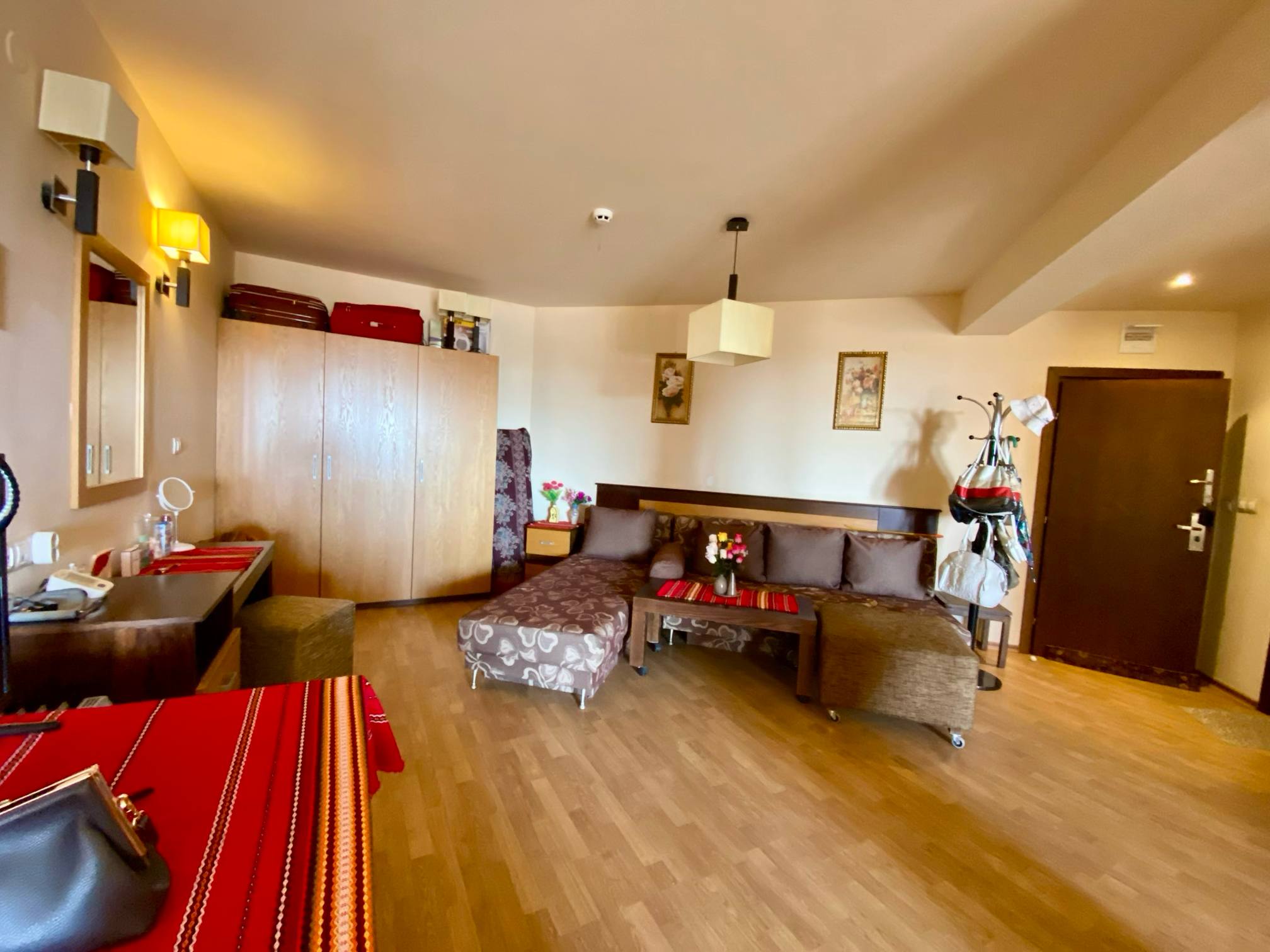We offer a spacious studio of 76 m², located on the 3rd floor in the complex Chairite on the Sunny Beach. To the sea - about 600 meters, which makes the object attractive for recreation, living and renting. The format of the studio differs favorably from standard offers - a large area allows you to organize the space as a full studio apartment with a clear division of zones, add a bedroom or office and create a comfortable place to live.