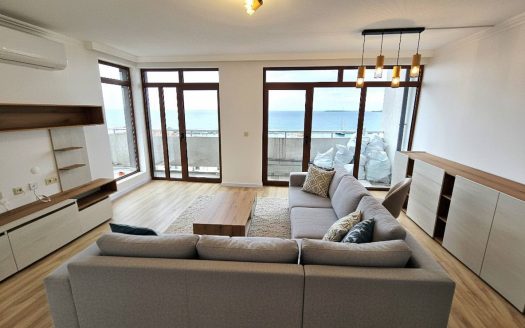 We offer a unique one bedroom apartment in Lazur 4 complex in Sveti Vlas, a property that combines a renovated modern interior, spacious layout and one of the rarest features on the coast: a 60 m² terrace with 360° panorama. It offers both sea and mountain views, making this a truly exclusive apartment.