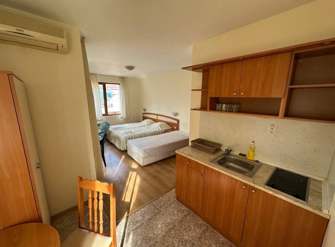 Продается двухкомнатная квартира в комплексе Amelia на курорте Солнечный Берег. Этот объект идеально подходит для проживания или аренды. Комплекс предлагает развитую инфраструктуру и спокойную атмосферу, что делает покупку квартиры у моря выгодным решением.