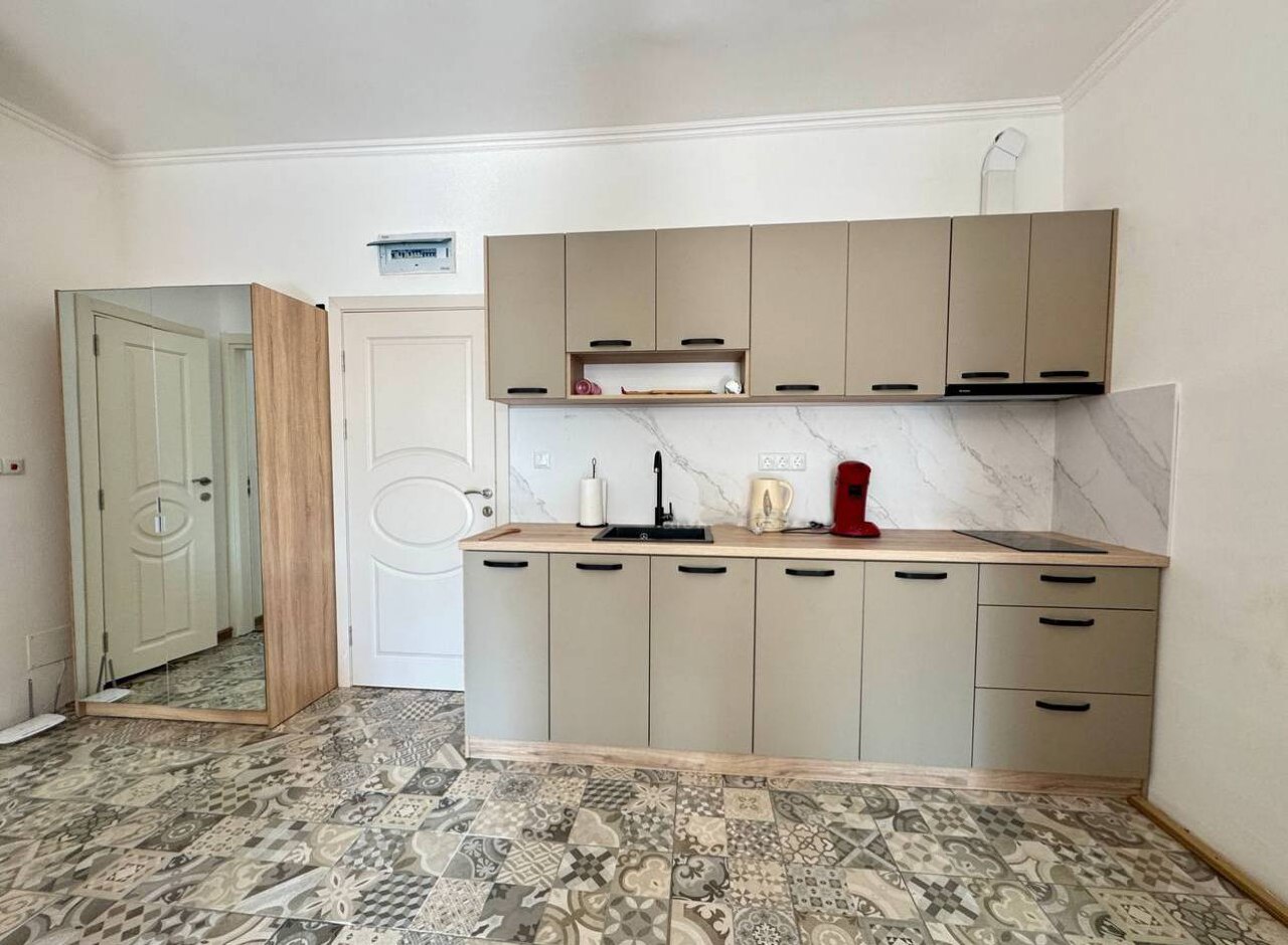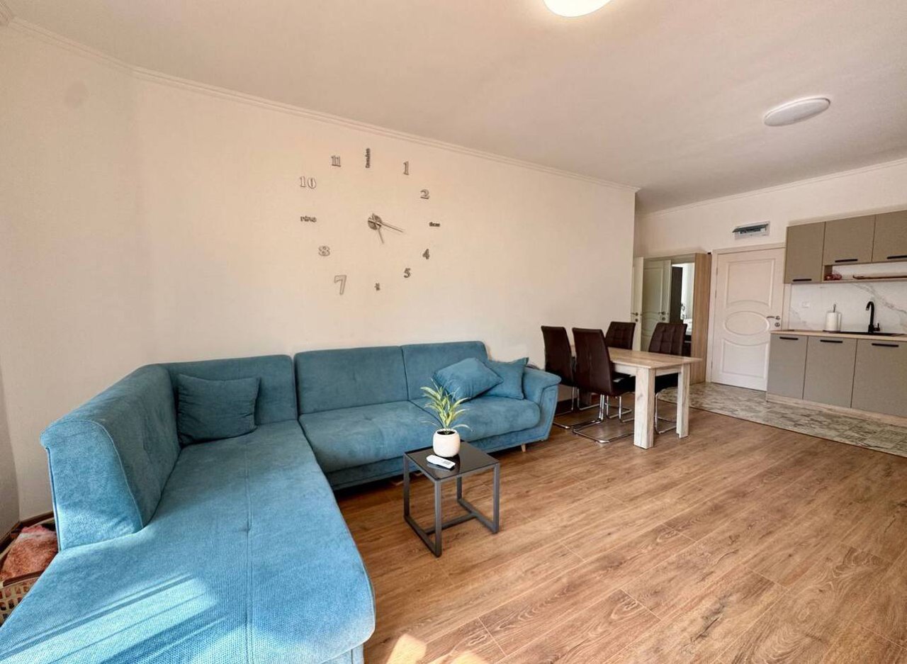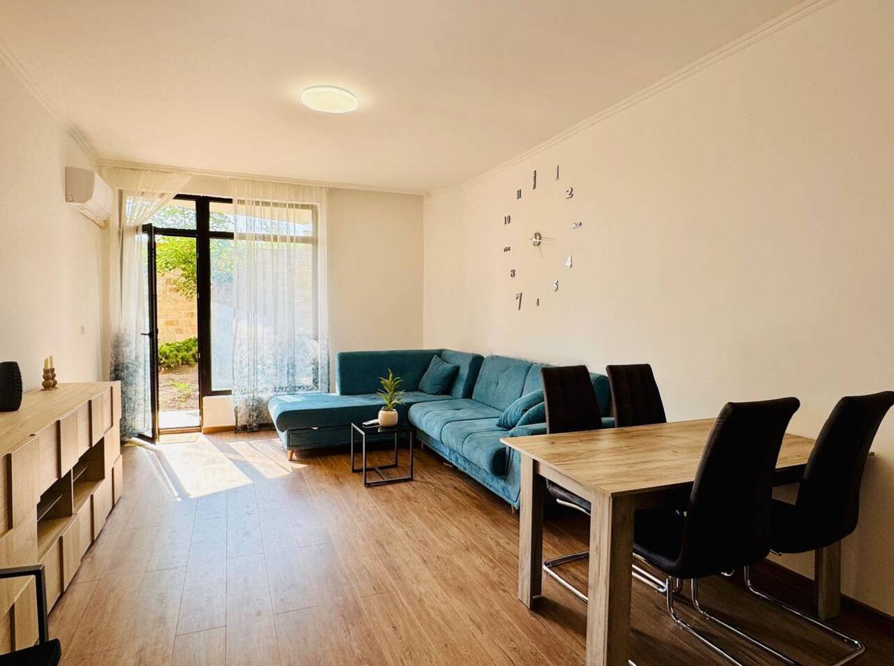 This 76 m² apartment is located on the ground floor. The internal layout includes a spacious living room with kitchen area, a separate bedroom and a bathroom. High ceilings and large windows create a feeling of spaciousness and comfort. The property is sold with modern renovation and furniture and is ready to move in.