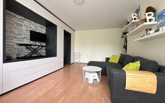 Квартира находится на первом этаже, что обеспечивает легкий доступ без лифта. Общая площадь составляет 70 квадратных метров. Планировка включает просторную гостиную с кухонной зоной, отдельную спальню, ванную комнату и террасу, что создает уютную атмосферу для жизни.