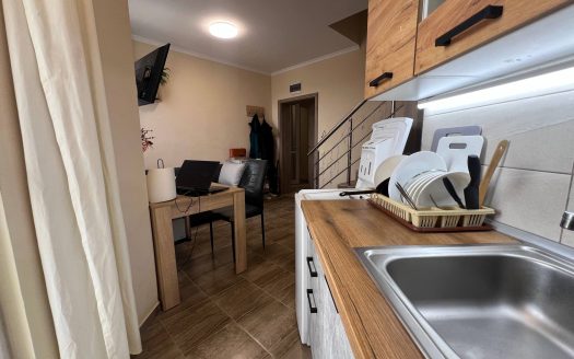 Двухуровневый мезонет площадью 59 м² на пятом этаже. Первый уровень включает просторную гостиную с кухонной зоной и санузел. На втором уровне расположена спальня и дополнительный санузел, обеспечивая комфорт и приватность. Подходит как для постоянного проживания, так и для аренды.