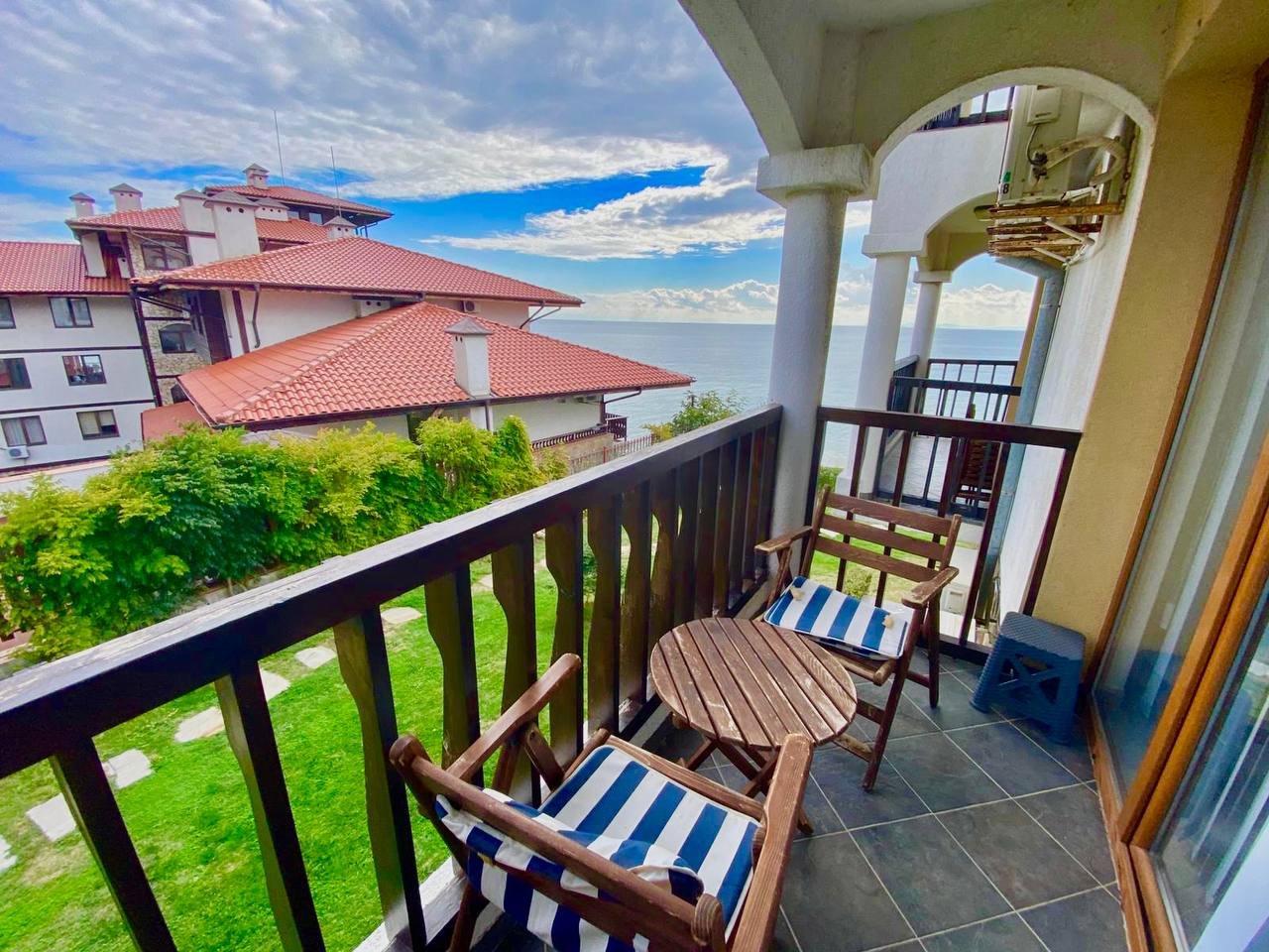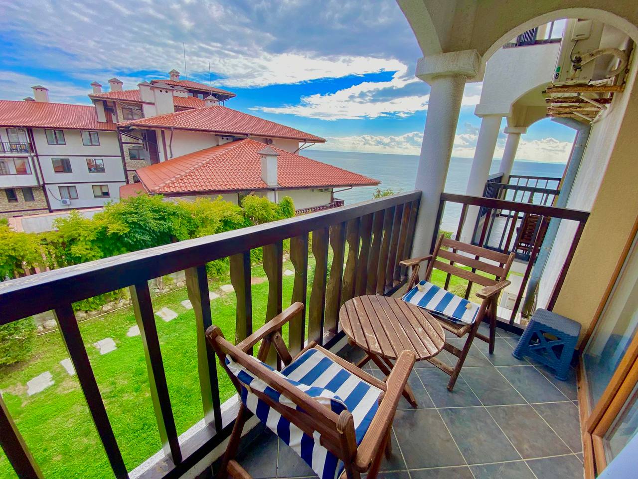 Sun Coast Resort, Sveti Vlas is a 125 m² three bedroom apartment on the 1st floor with sea view.