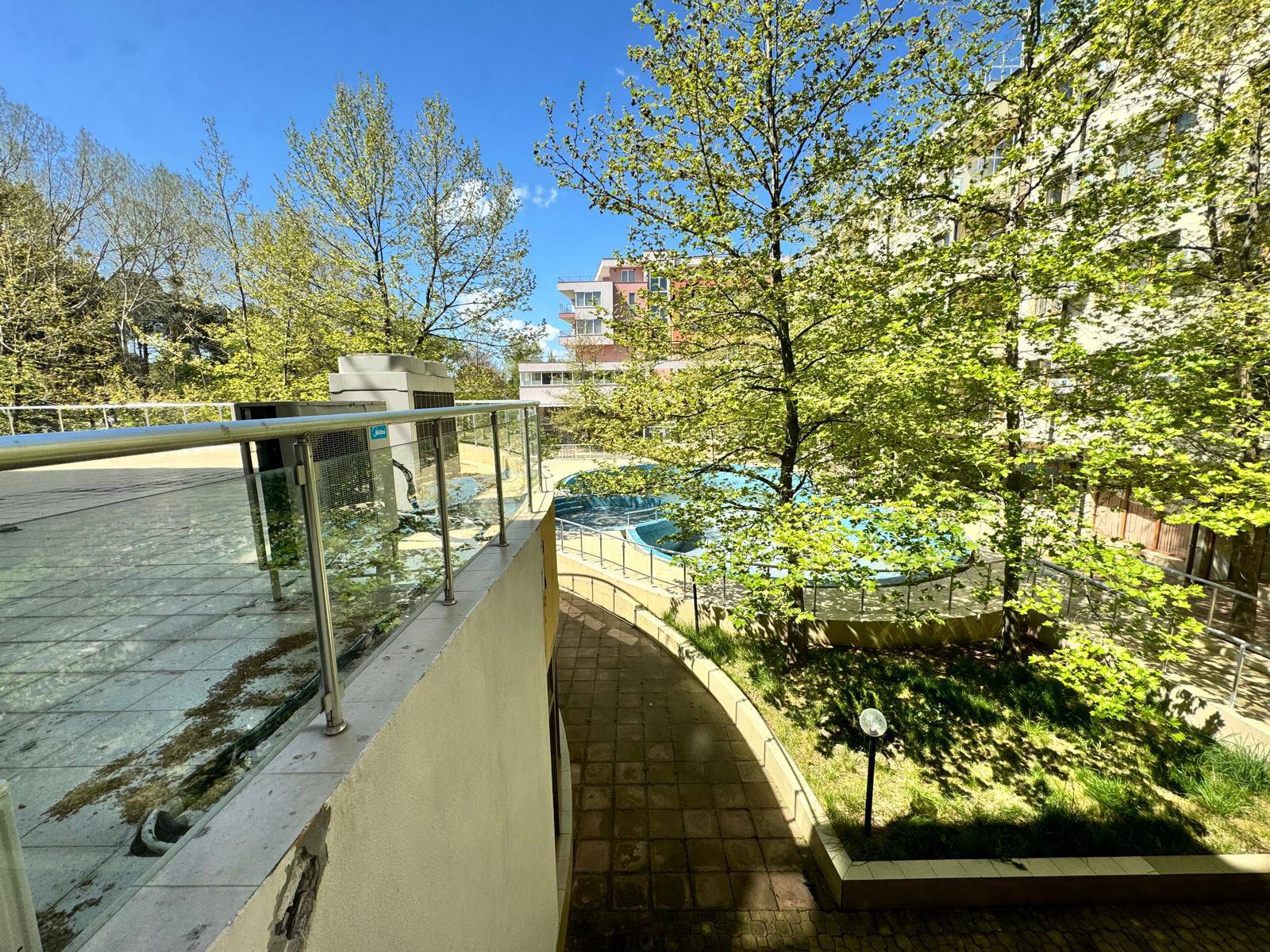 Жилой комплекс введён в эксплуатацию и имеет официальный статус с Актом 16, что исключает строительные риски. На территории есть открытый бассейн и ресторан, что создаёт комфортные условия для отдыха. Такса поддержки составляет 14 евро за квадратный метр в год.