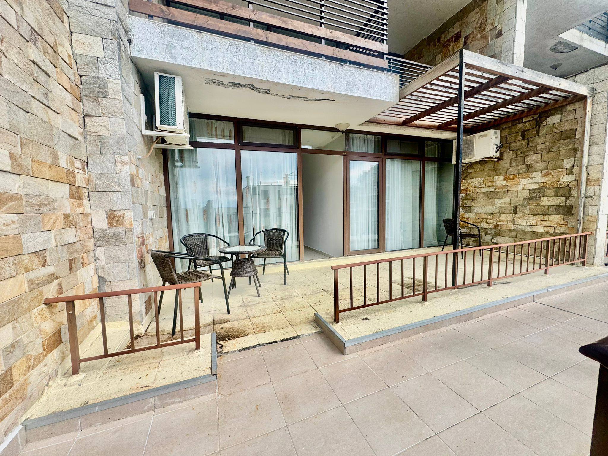 Предлагается к продаже трёхкомнатная квартира в Dolce Vita, расположенная на первой линии в курортном городе Святой Влас. Этот объект идеально подходит для тех, кто ищет real estate in Bulgaria у моря с комфортными условиями для жизни или аренды. Квартира с собственным двориком — редкое предложение, обеспечивающее приватность и дополнительное пространство.