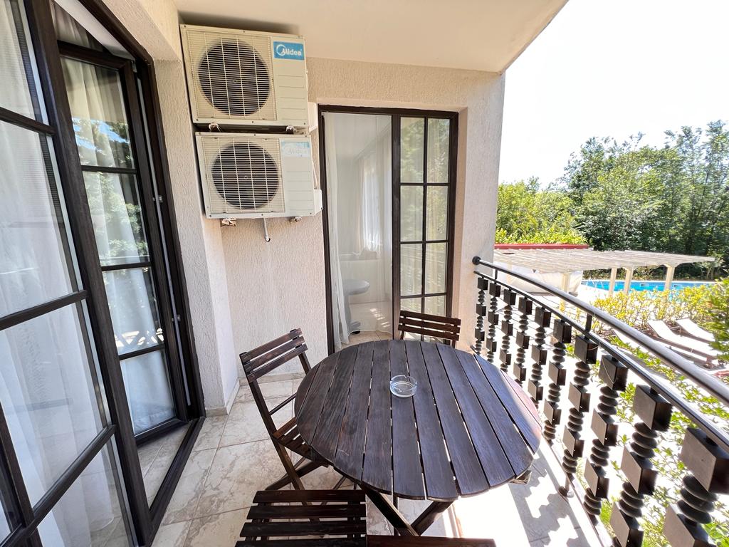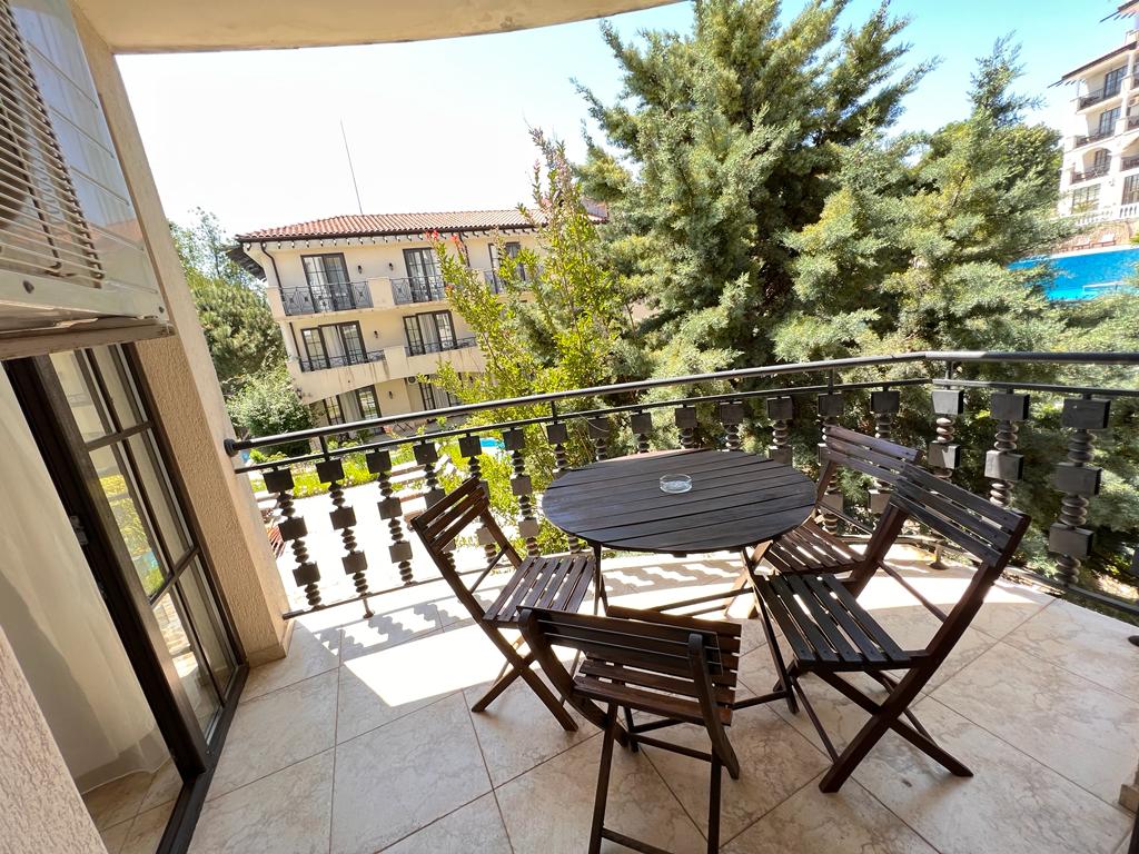 Уютная двухкомнатная квартира с видом на бассейн и зелёный двор в Обзоре
