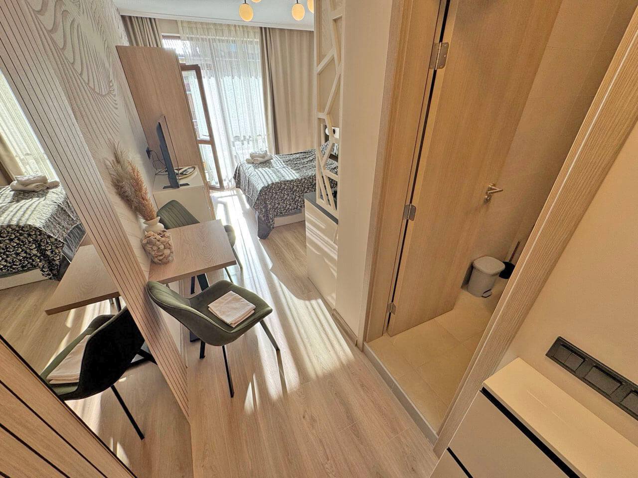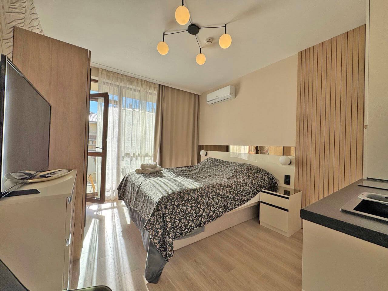 1. Полная меблировка – студия готова к проживанию или сдаче в аренду.