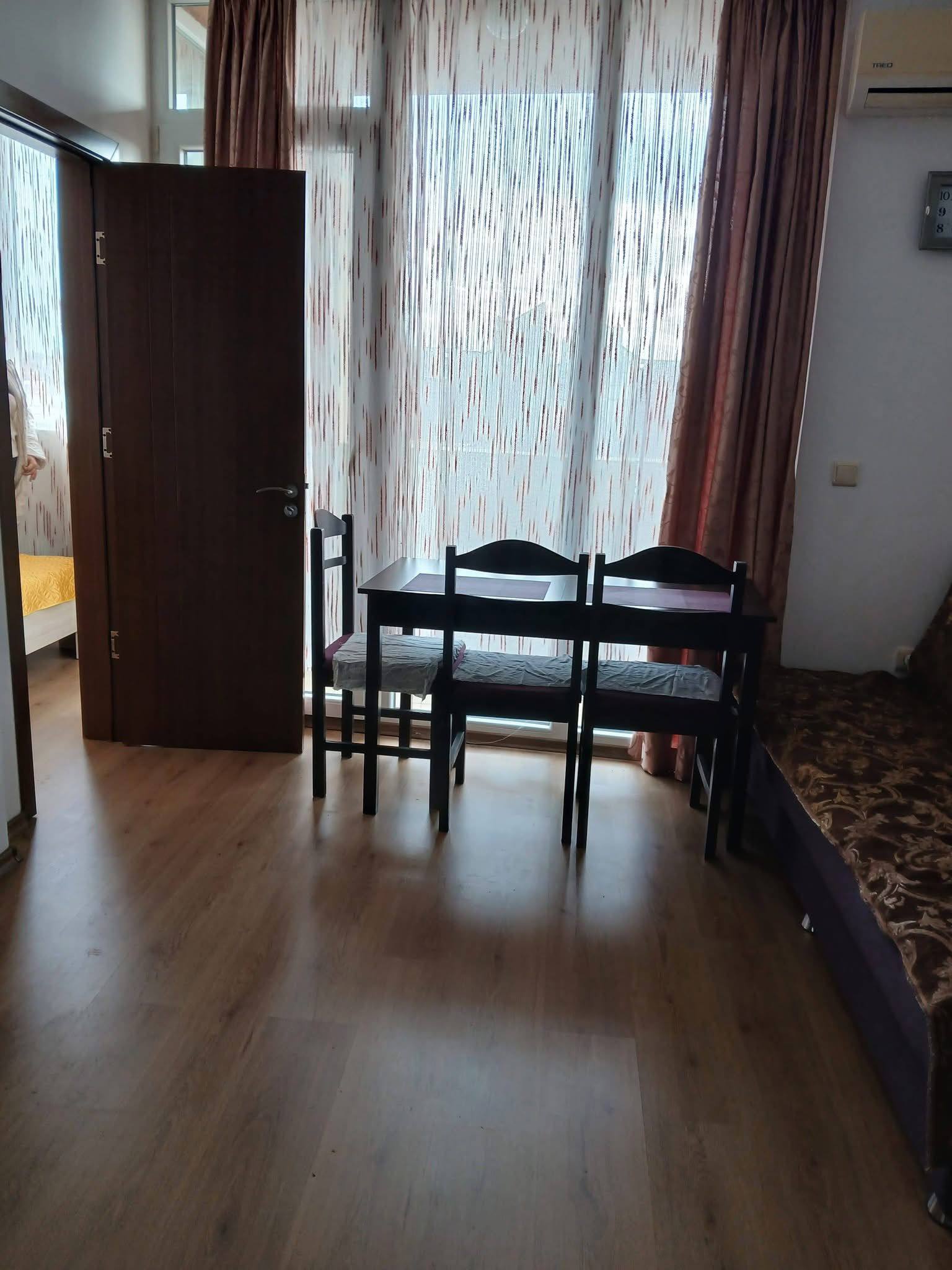 Квартира находится в районе Какао Бич, всего в 10 минутах от моря. Развита инфраструктура: рядом магазины, кафе и остановки общественного транспорта. Близость к историческому городу Несебр добавляет привлекательности локации.