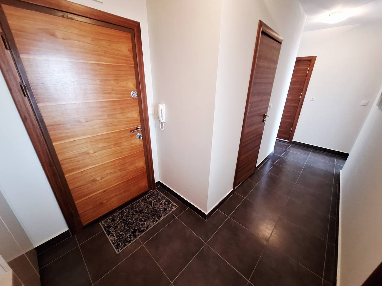 Планировка включает просторную гостиную с кухонной зоной, две отдельные спальни, коридор, санузел и большую террасу. Такое решение идеально подходит для семьи: гостиная становится центром отдыха, а спальни обеспечивают комфортное уединение. Терраса — дополнительное пространство для проведения времени на свежем воздухе.
