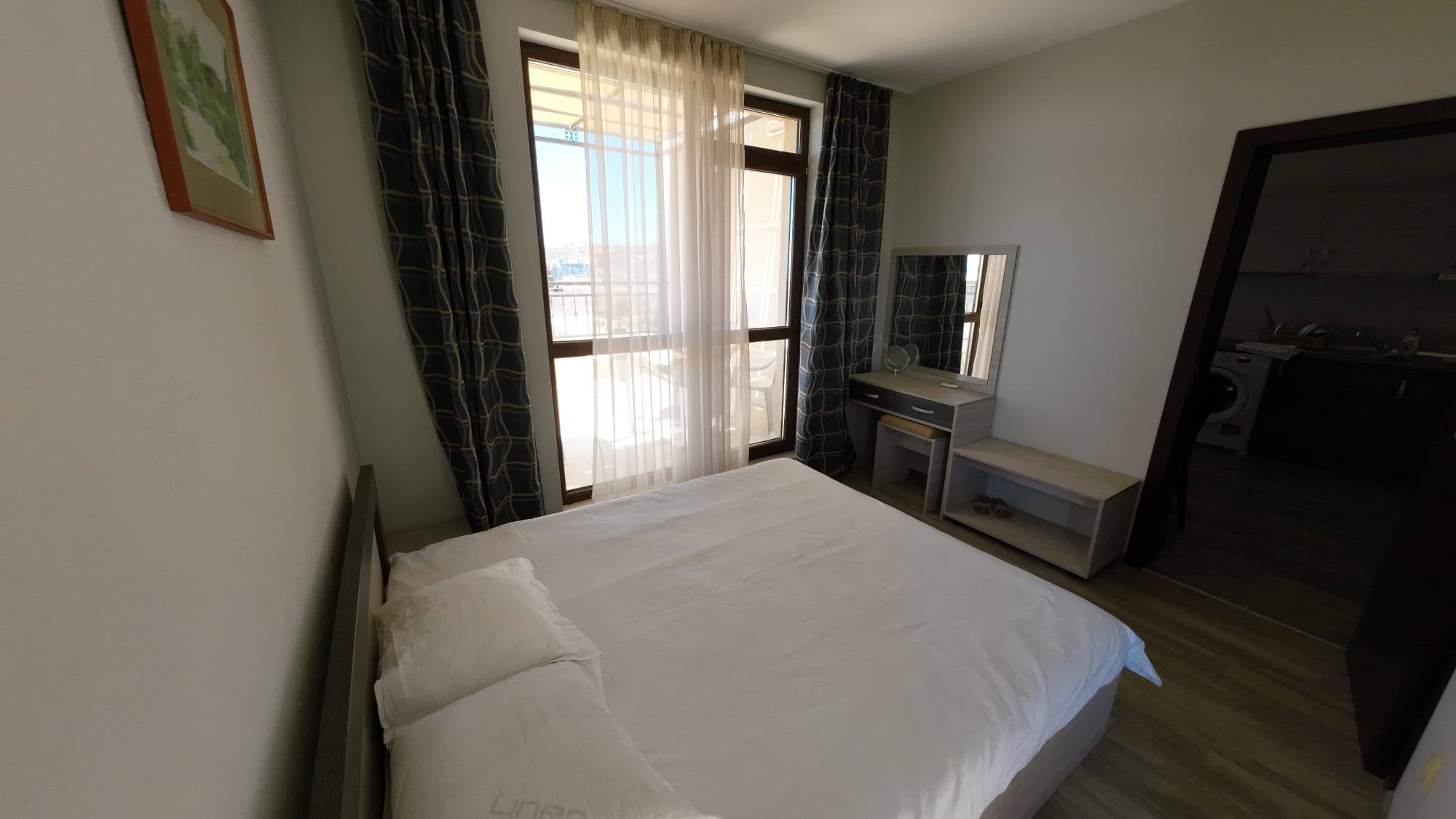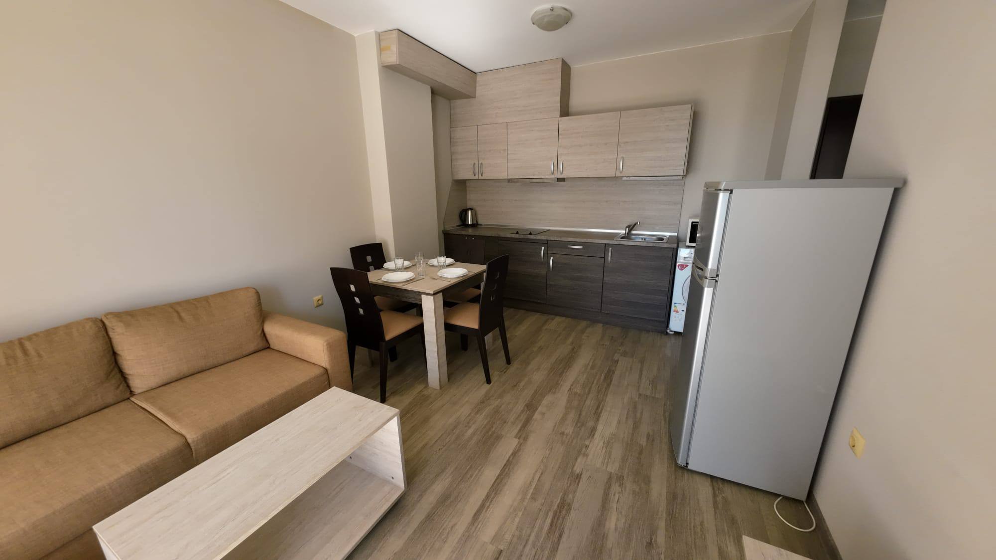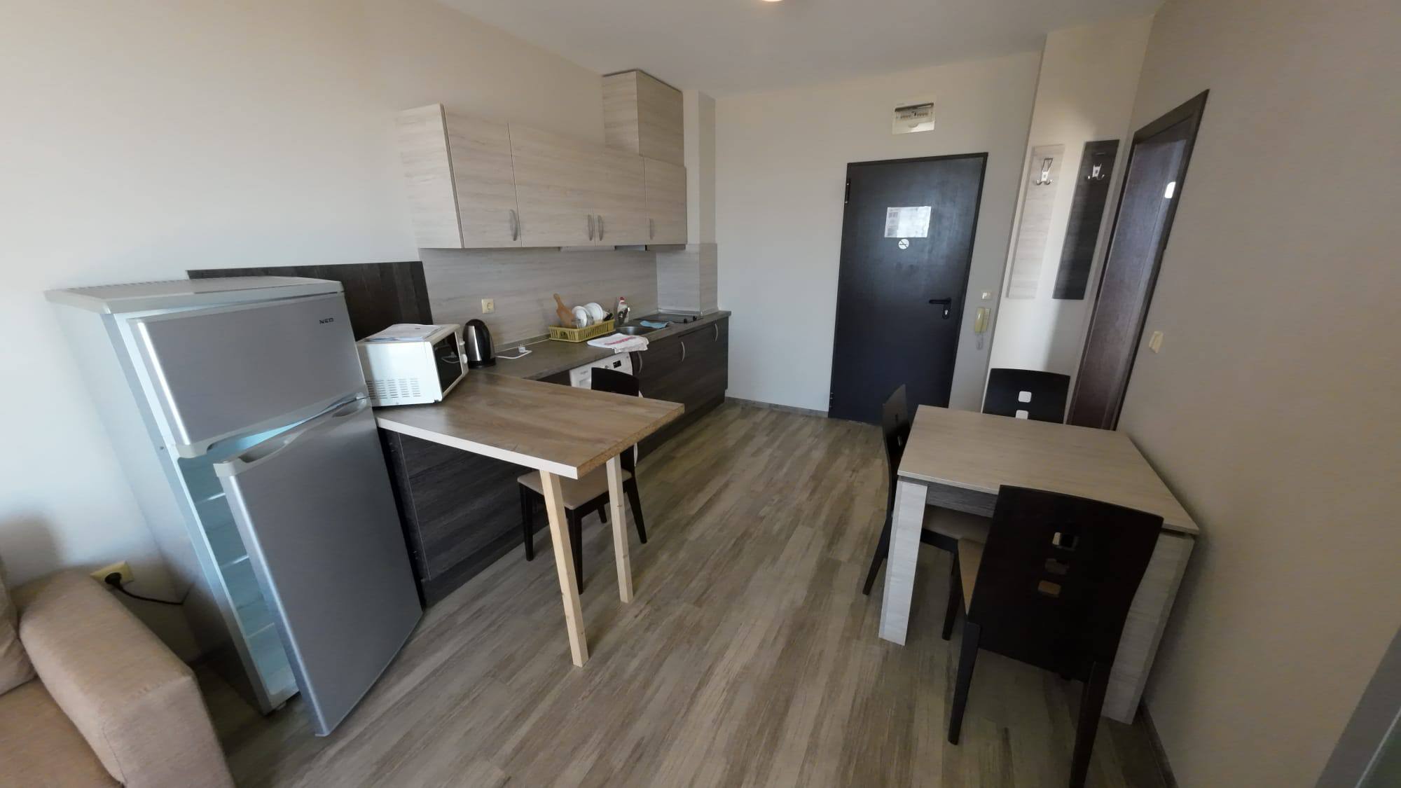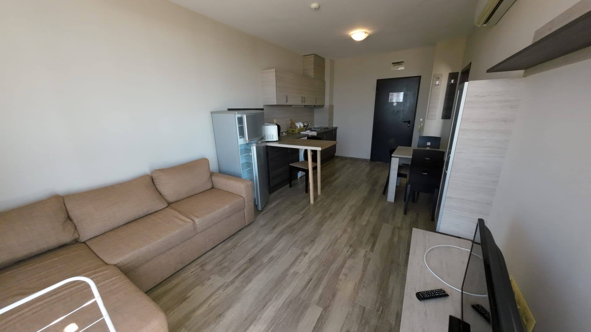Продается стильная двухкомнатная квартира в жилом комплексе Sorrento, расположенном в комфортном районе Святого Власа. Этот объект идеально подходит для тех, кто ищет недвижимость в Болгарии с панорамным видом на море и высоким уровнем комфорта.