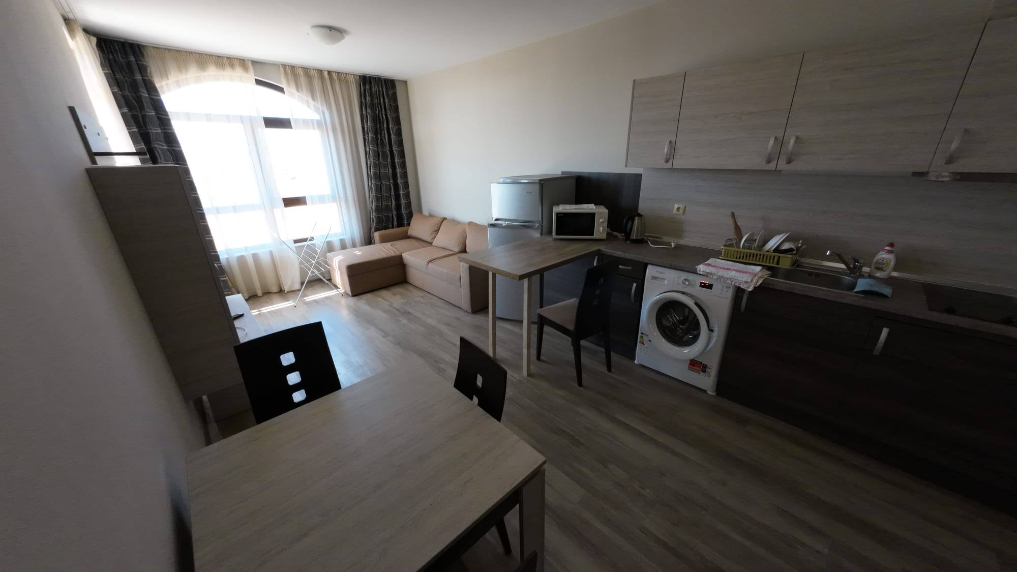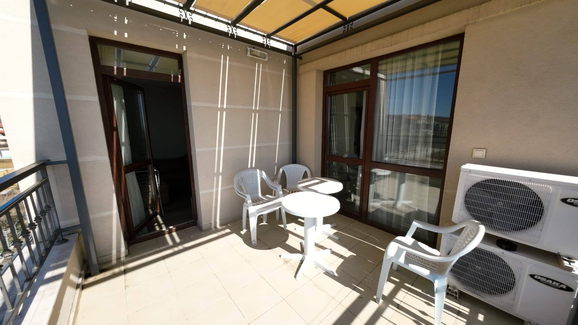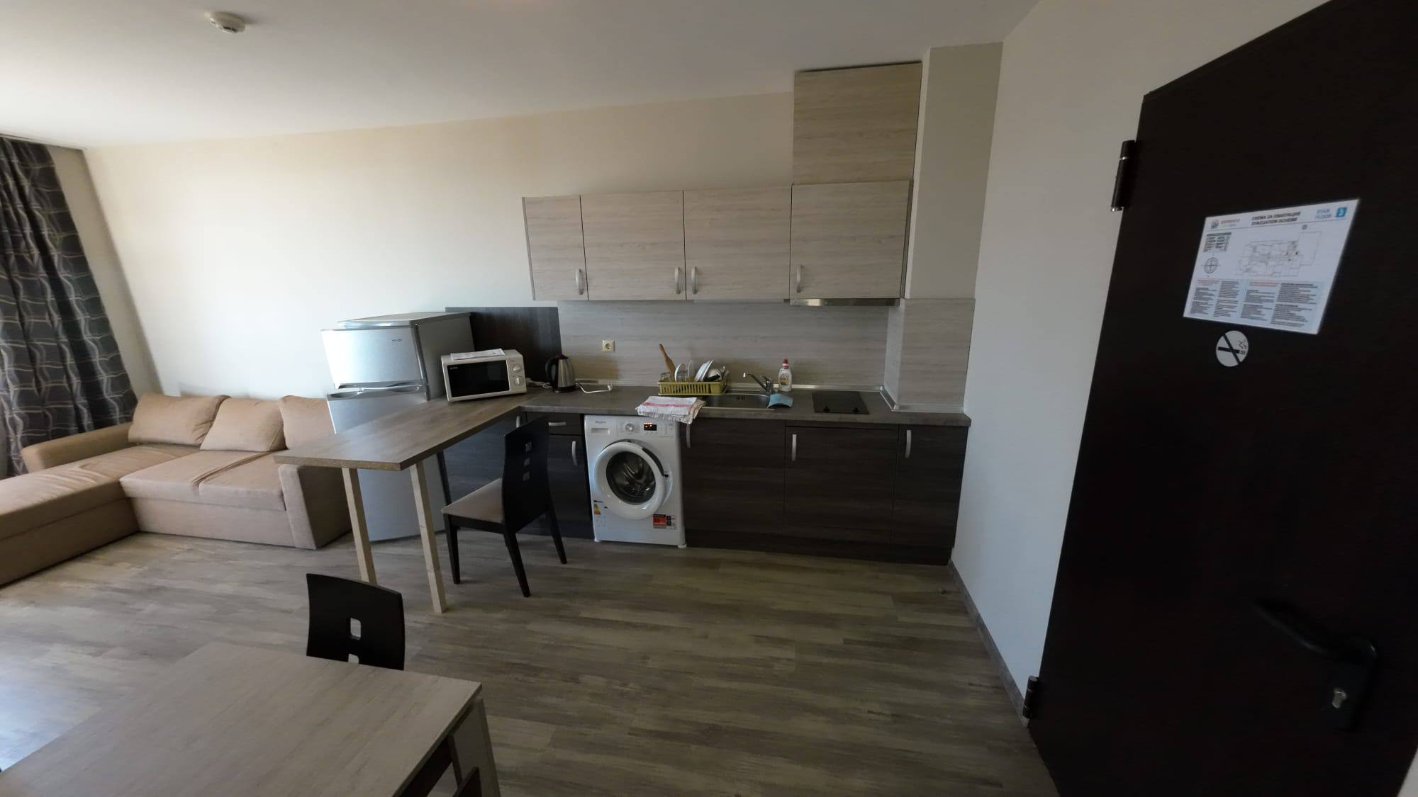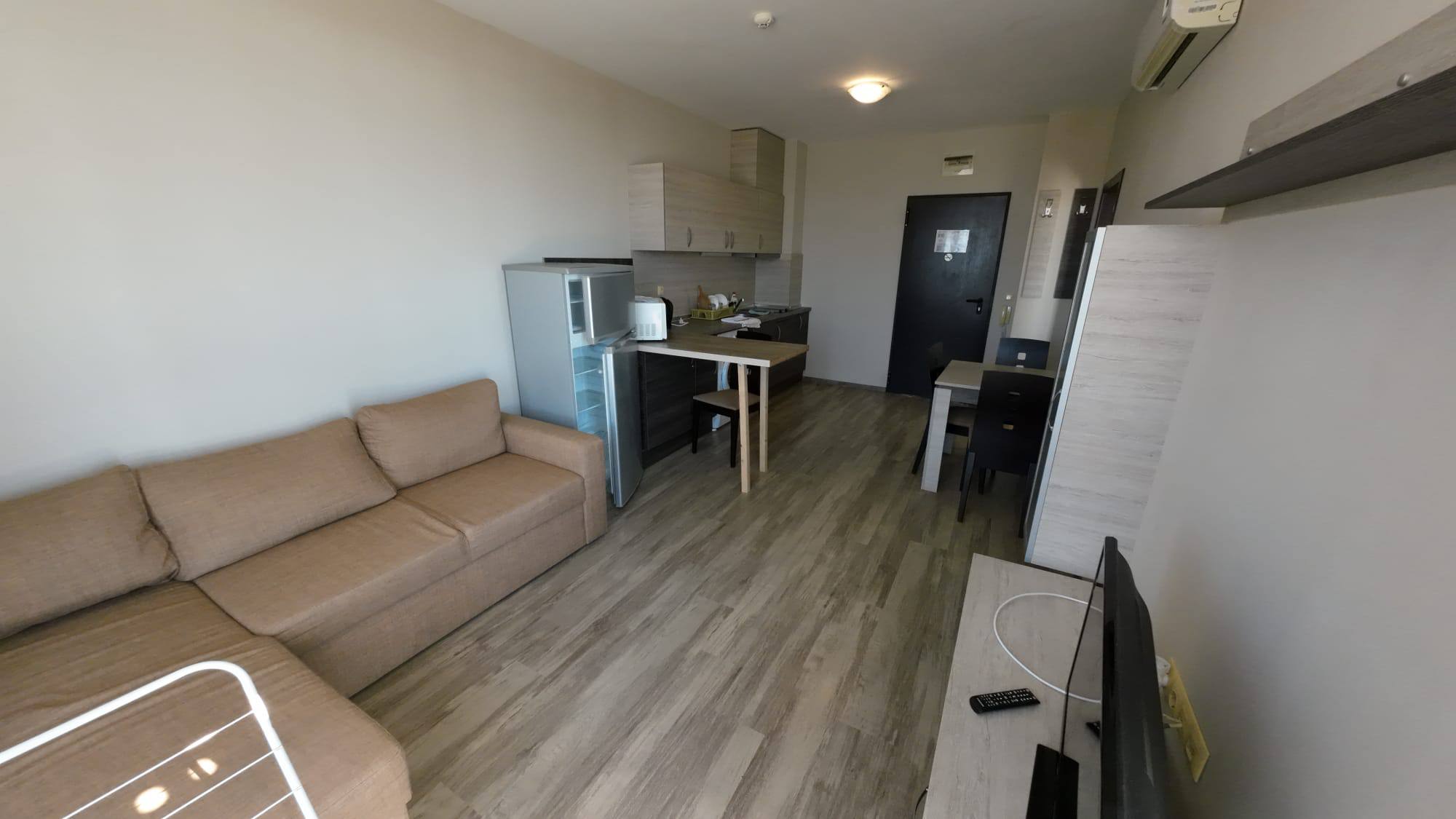 Продается стильная двухкомнатная квартира в жилом комплексе Sorrento, расположенном в комфортном районе Святого Власа. Этот объект идеально подходит для тех, кто ищет недвижимость в Болгарии с панорамным видом на море и высоким уровнем комфорта.