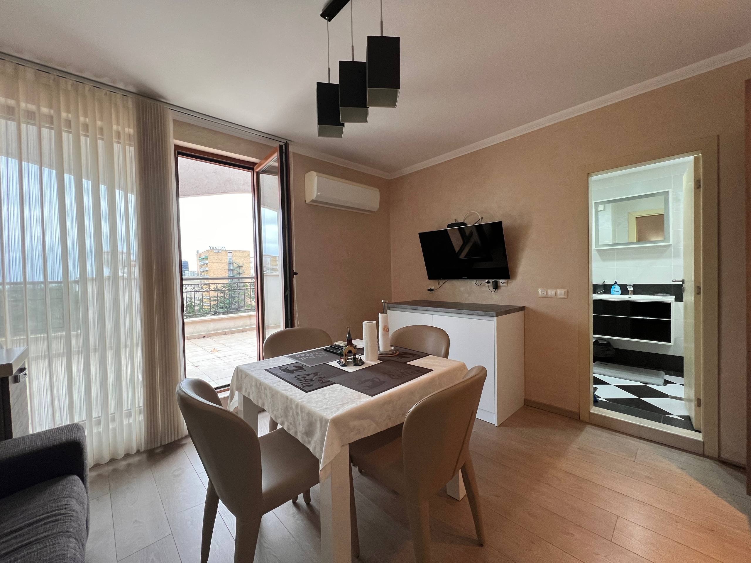 Продается двухкомнатная квартира в престижном комплексе Harmony Palace на курорте Солнечный Берег. Идеально подходит для комфортного проживания у моря и инвестиций в аренду.