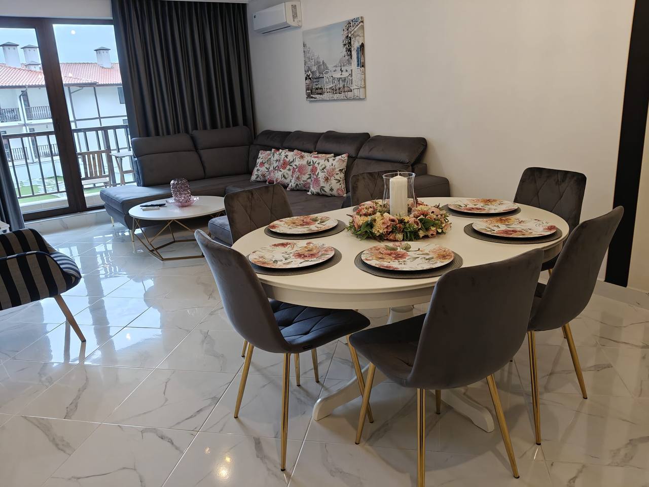 Такса обслуживания составляет 12 евро за квадратный метр в год, что соответствует уровню обслуживания и инфраструктуры комплекса. Территория поддерживается в идеальном состоянии, а атмосфера приватности делает “Этару 4” одним из самых комфортных комплексов в Святом Власе.