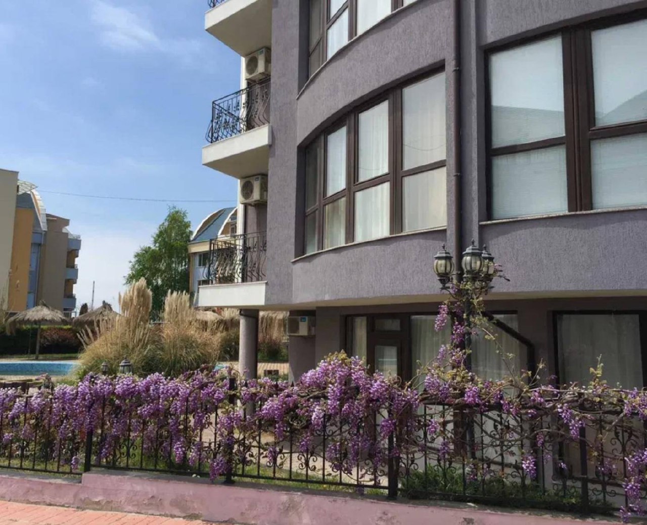 Объект расположен в ухоженном жилом комплексе курортного типа. Территория закрытая, аккуратная, с бассейном и зонами общего пользования. Формат комплекса удобен для сезонного отдыха, а также для сдачи в аренду в летний период.