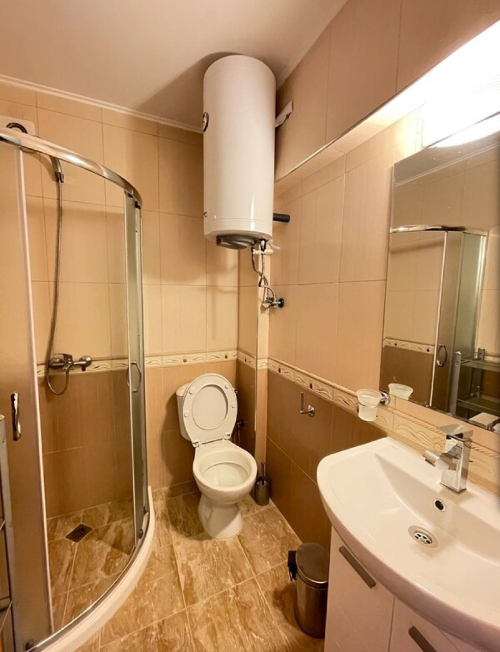 Студия площадью 34 м² расположена на пятом этаже. Включает жилую комнату с кухонной зоной, ванную комнату и просторную террасу, которую можно застеклить для увеличения полезного пространства. Высокий этаж обеспечивает хорошее освещение и приятные виды.