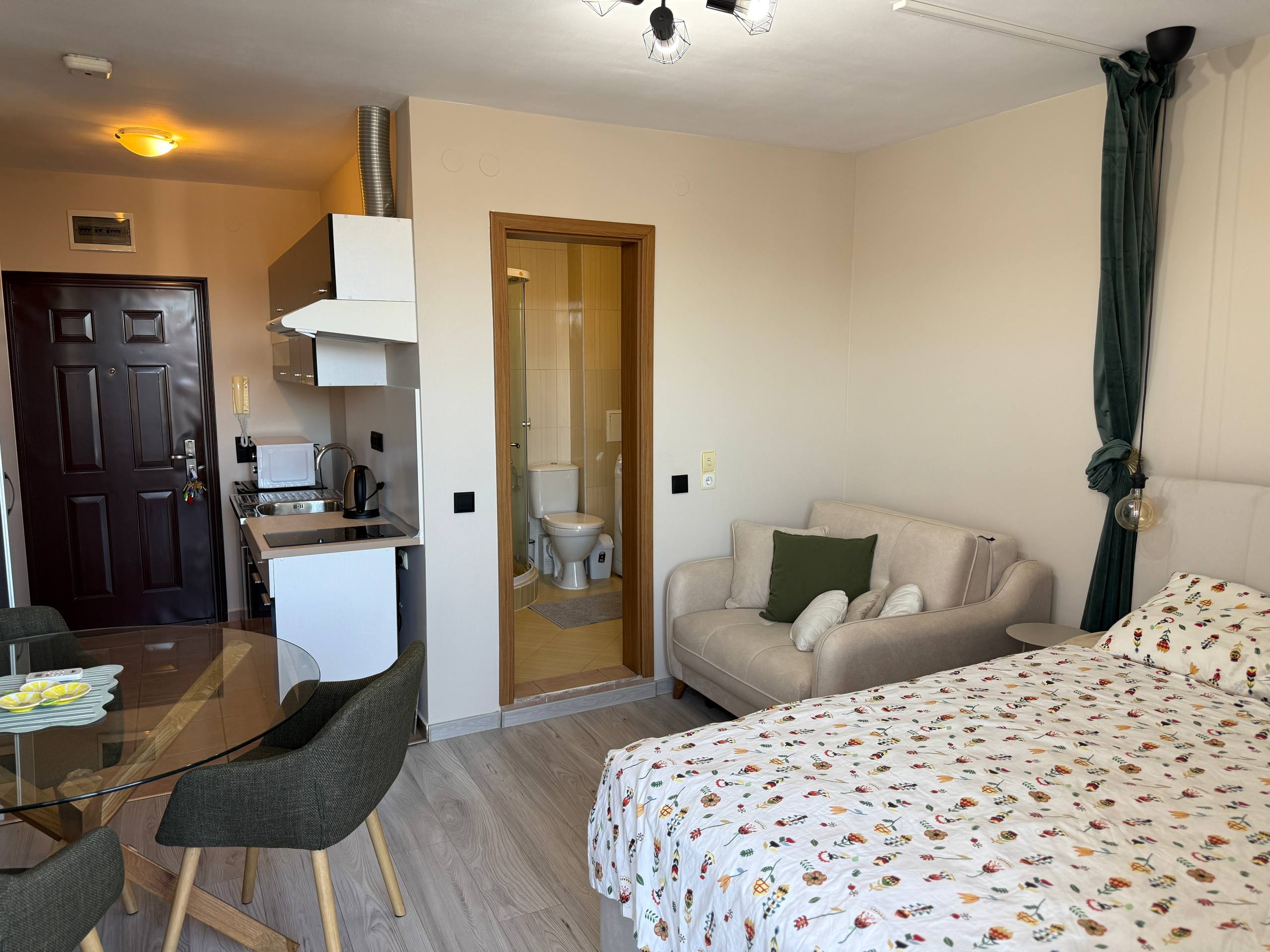 Студия площадью 36 м² находится на третьем этаже. Планировка без лишних коридоров позволяет эффективно использовать пространство. Жилая и кухонная зоны легко зонируются, что обеспечивает комфортное проживание.