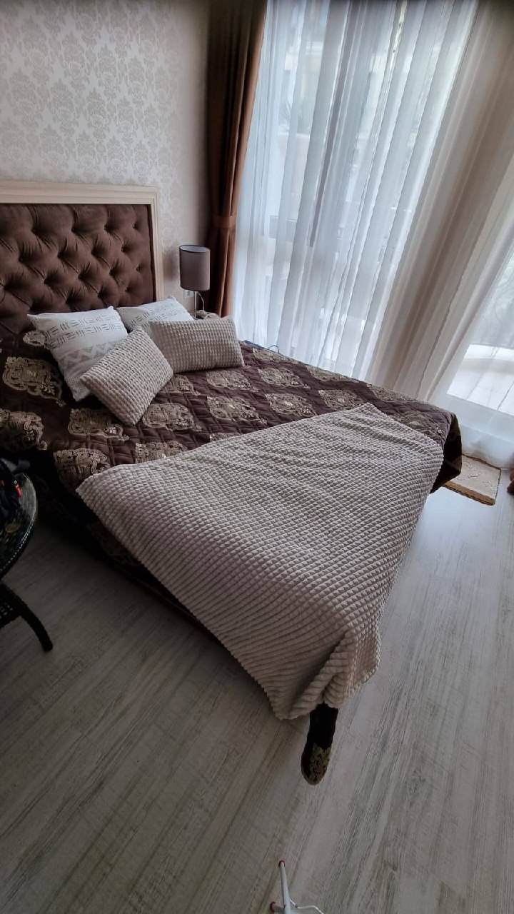 Апартамент расположен на втором этаже, площадь составляет 30 м² — формат студии сочетает в себе функциональность и удобство: комната, в которой можно разместить зону отдыха и спальню, кухонная ниша и санузел. Пространство легко адаптировать под собственные нужды, а благодаря грамотно продуманной площади помещение не кажется маленьким. Жильё продаётся с мебелью, что позволяет сразу использовать его для проживания или сдачи в аренду — без необходимости дополнительных вложений.