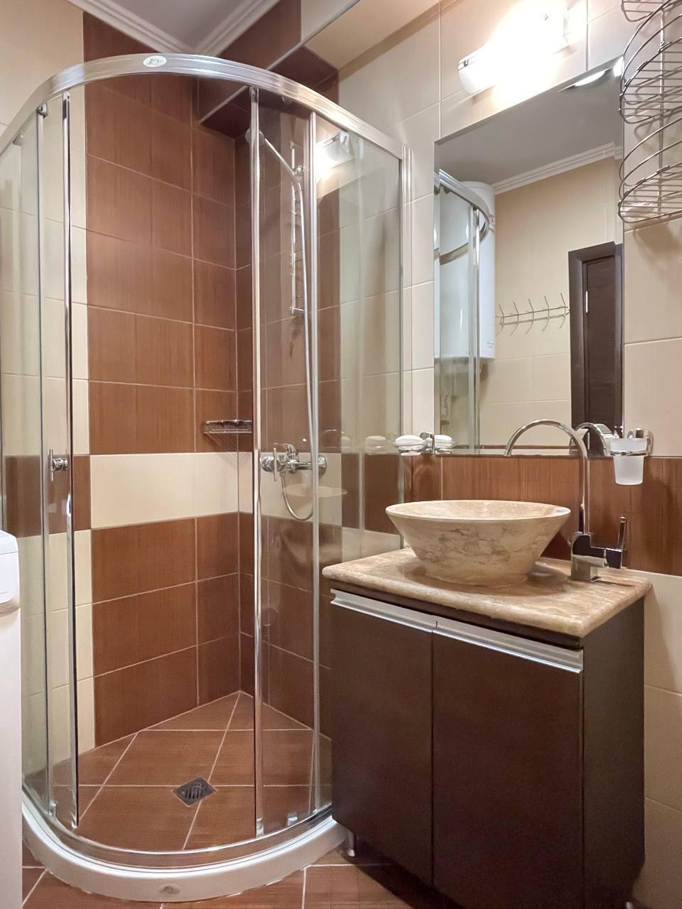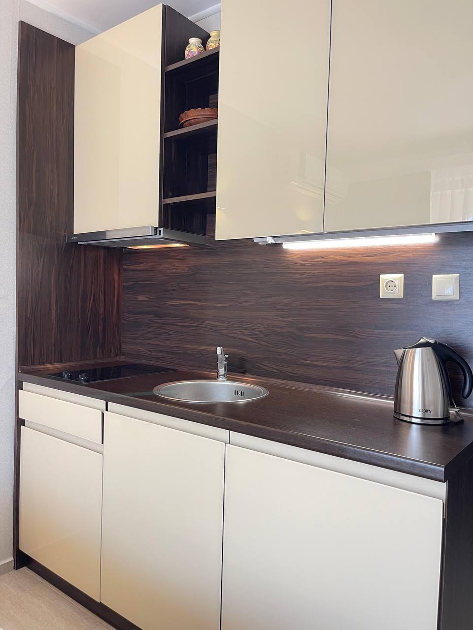 Квартира находится на пятом этаже и занимает площадь 35 м². Планировка включает жилую зону с кухонным уголком, ванную комнату с туалетом и террасу, что обеспечивает дополнительное пространство для отдыха на свежем воздухе. Студия полностью меблирована и оснащена необходимой техникой, что позволяет сразу начать проживание или сдачу в аренду без дополнительных вложений.
