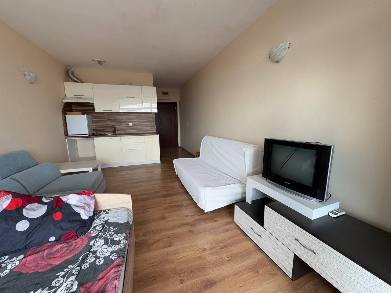Продаётся уютная студия в современном жилом комплексе Bora Bora, расположенном в спокойной и зелёной части курорта Равда.