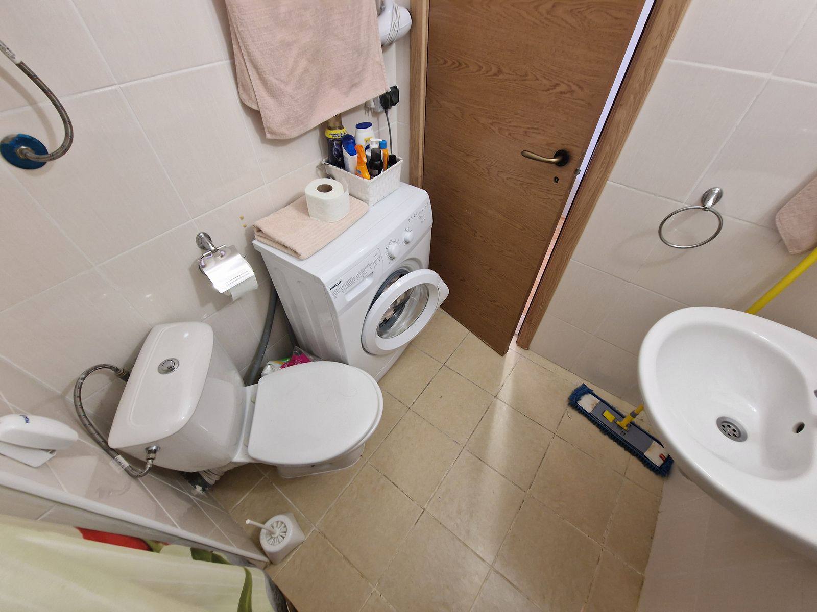Студия на втором этаже комплекса имеет общую площадь 28 квадратных метров, что делает её удобной для проживания одного или двух человек. Планировка включает жилую зону с кухонным уголком, ванную комнату с туалетом и террасу для отдыха. Такой формат квартиры подходит для жизни или аренды, а также для тех, кто ищет доступное жилье у моря.