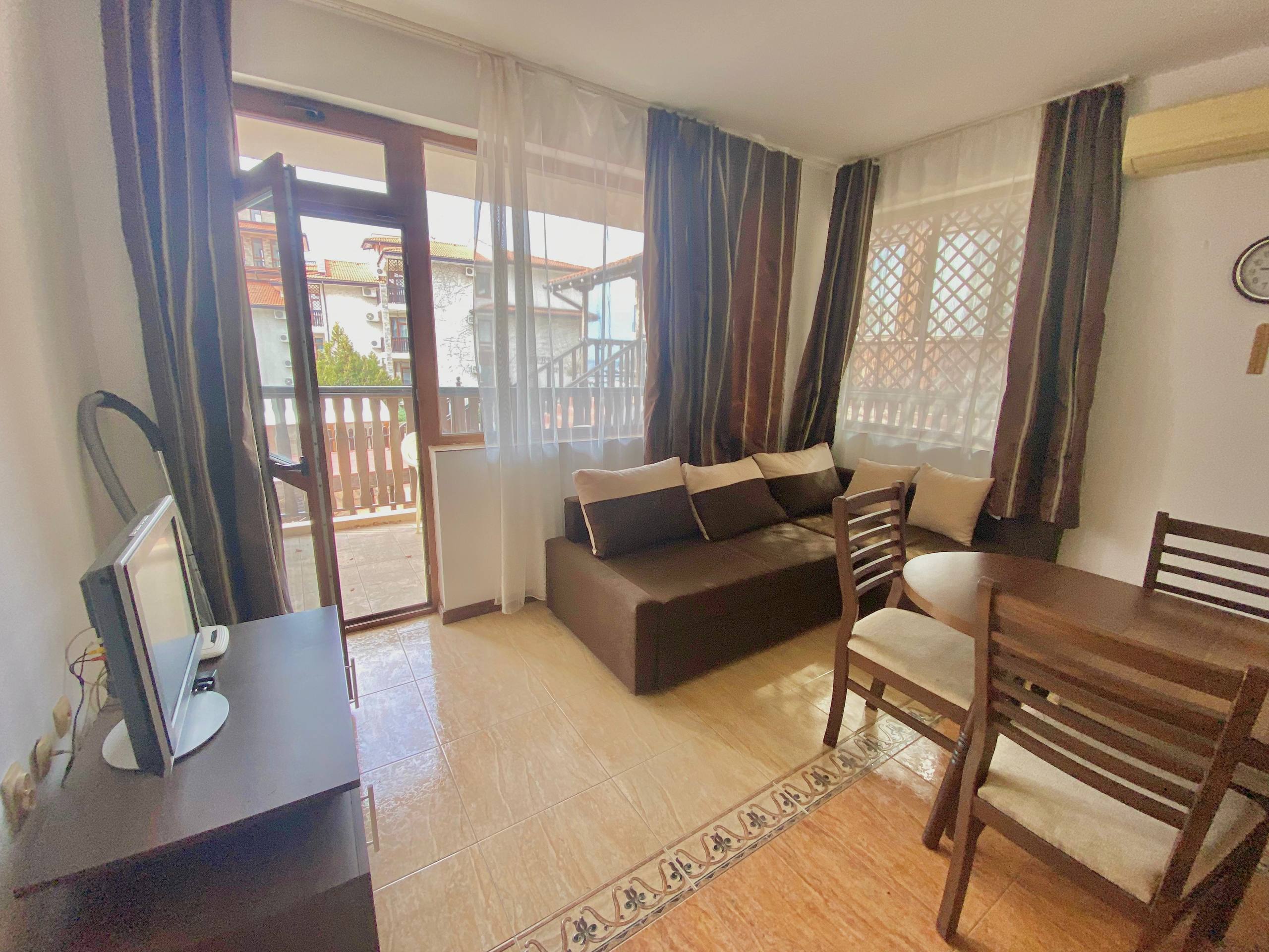 Комплекс «Tryavna» предлагает развитую инфраструктуру и спокойную атмосферу. Он подходит для круглогодичного проживания и имеет фиксированные расходы на содержание в размере 600 евро в год, что делает владение недвижимостью выгодным.