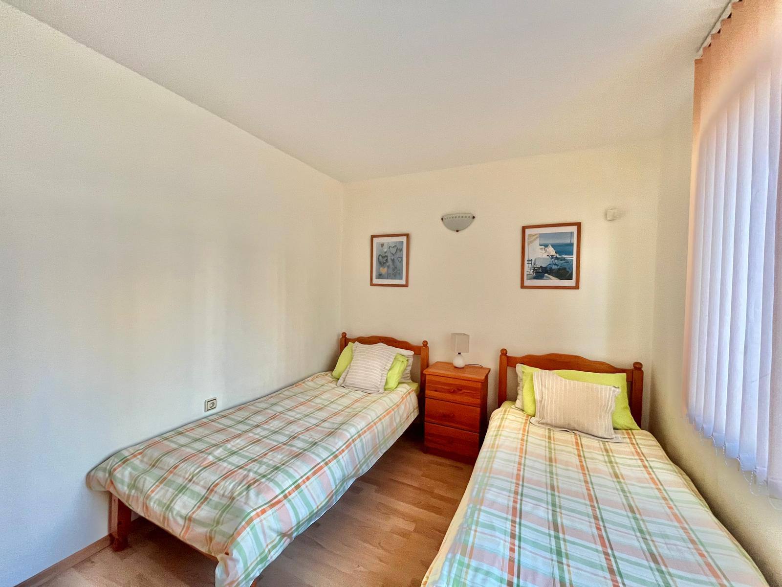 Предлагается просторная трёхкомнатная квартира формата «две спальни + гостиная», расположенная на втором этаже в комплексе Sea View в Святом Власе. Объект ориентирован на тех, кто ищет полноценное жильё у моря с готовой обстановкой и функциональной планировкой. Общая площадь — 86 м², что позволяет комфортно разместиться семье или проводить длительный сезонный отдых без ощущения стеснения. Наличие мебели избавляет покупателя от дополнительных затрат — апартамент готов к пользованию с момента сделки.