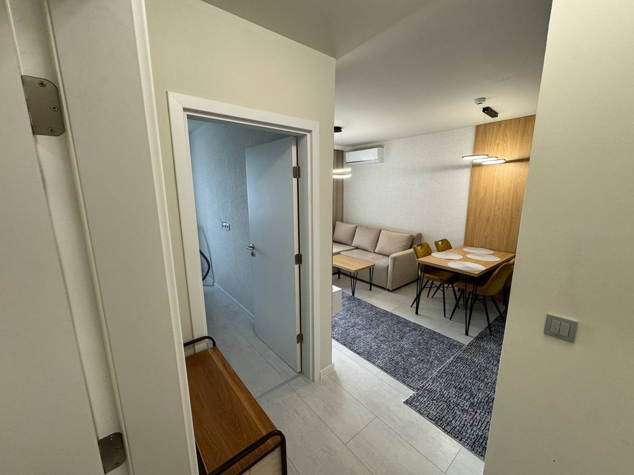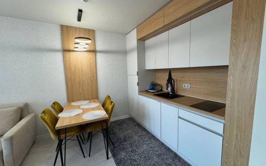 Квартира площадью 50 м² на третьем этаже здания 2024 года постройки. Планировка включает гостиную с кухонной зоной и отдельную спальню. Южное расположение обеспечивает хорошее естественное освещение и комфортную температуру. Такой формат квартиры подходит как для постоянного проживания, так и для аренды без дополнительных затрат на ремонт.