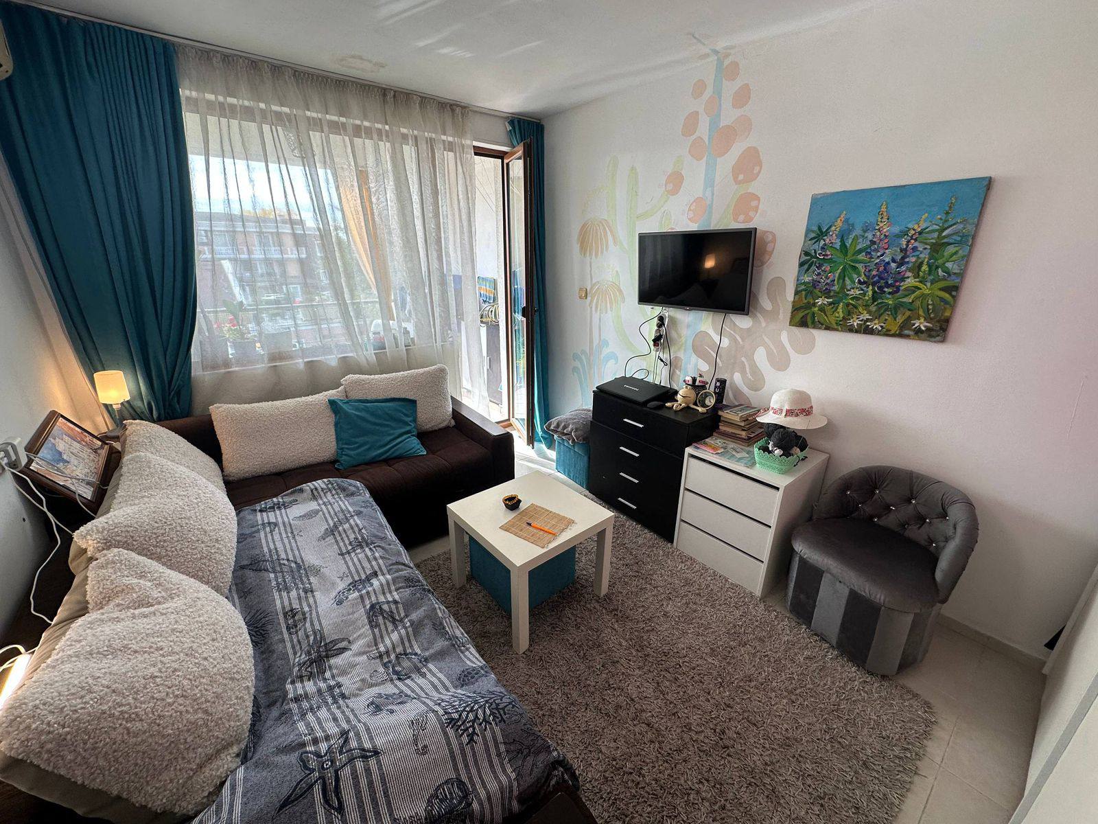 Двухкомнатная квартира площадью 58 м², на 5 этаже, полностью меблированная, с бассейном на территории, низкой таксой обслуживания и отличным расположением. Цена — 67 000 евро. Идеальный вариант для тех, кто ищет практичную, уютную и выгодную недвижимость в центре Солнечного Берега.