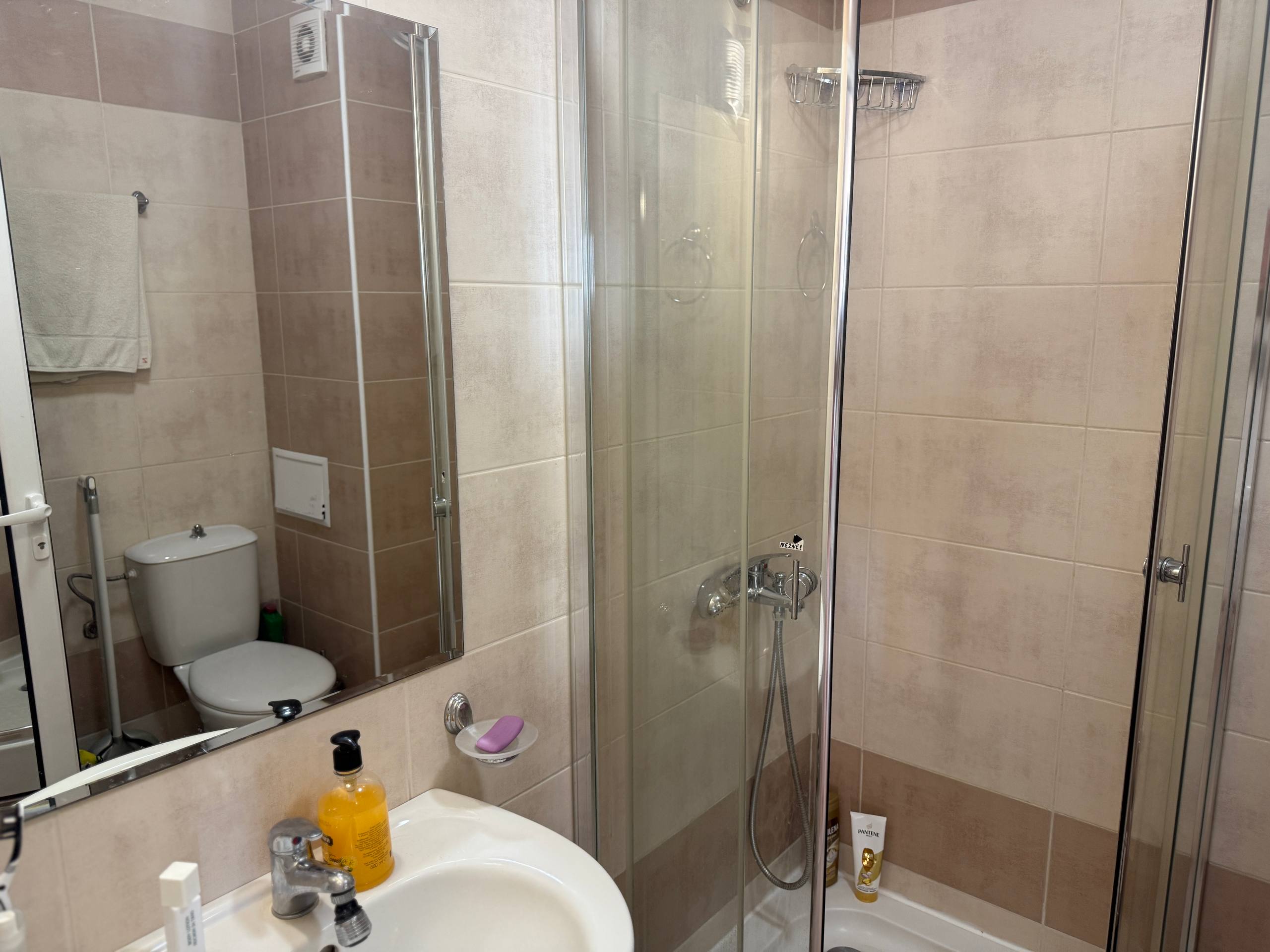 Апартамент планувально виконаний як двокімнатний: є вітальня зона з кухнею та окрема спальня. Такий розподіл створює функціональний простір, де можна відпочивати, приймати гостей і комфортно жити весь рік. Вид на басейн додає відчуття приватності та курортної атмосфери, а перспектива на море посилює цінність об'єкта, оскільки такі варіанти затребувані завжди. Квартира продається за ціною 106 000 € - це адекватний показник для Святого Власа, особливо з огляду на локацію, вид і статус комплексу.