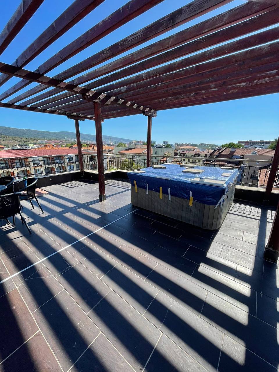 На терасі встановлено джакузі, що робить об'єкт ще більш привабливим. Наявність власного джакузі на даху - рідкість для житлових комплексів узбережжя, і така перевага істотно вирізняє квартиру з-поміж інших пропозицій. Це ідеальне місце для відпочинку після спекотного дня, для проведення часу з сім'єю або для романтичних вечорів.