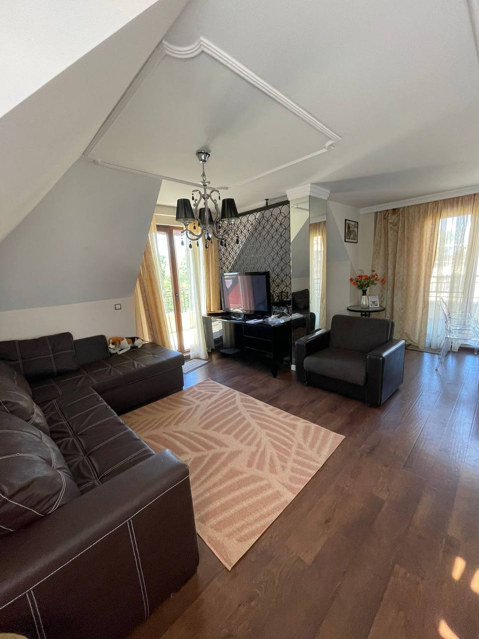 Пропонується унікальний пентхаус з однією спальнею, розташований на останньому, шостому поверсі комплексу Harmony 1. Загальна площа становить 165 м², що робить цей об'єкт одним із найпросторіших варіантів у комплексі. Вартість - 120 000 євро, такса підтримки - 12 євро/м² на рік. Апартамент поєднує в собі великі площі, приватність, зручне планування і рідкісні переваги, які зустрічаються далеко не в кожному комплексі на Сонячному Березі.