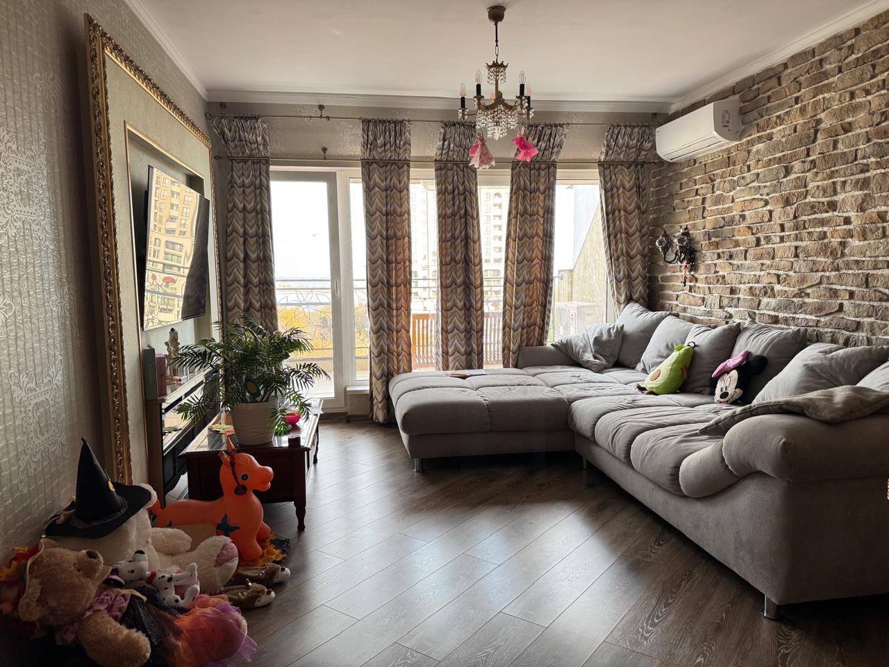 Пропонується функціональна і повністю мебльована трикімнатна квартира площею 98,62 м², доповнена окремою коморою 4,65 м². Загальна площа об'єкта становить 103,27 м², що робить його відповідним рішенням для тих, хто шукає продуманий простір і комфорт міського життя. Житло розташоване на 6 поверсі та вирізняється зручним плануванням: простора вітальня, дві спальні, окремий туалет і дві тераси, що забезпечують природне освітлення та можливість організації зон відпочинку на відкритому повітрі.