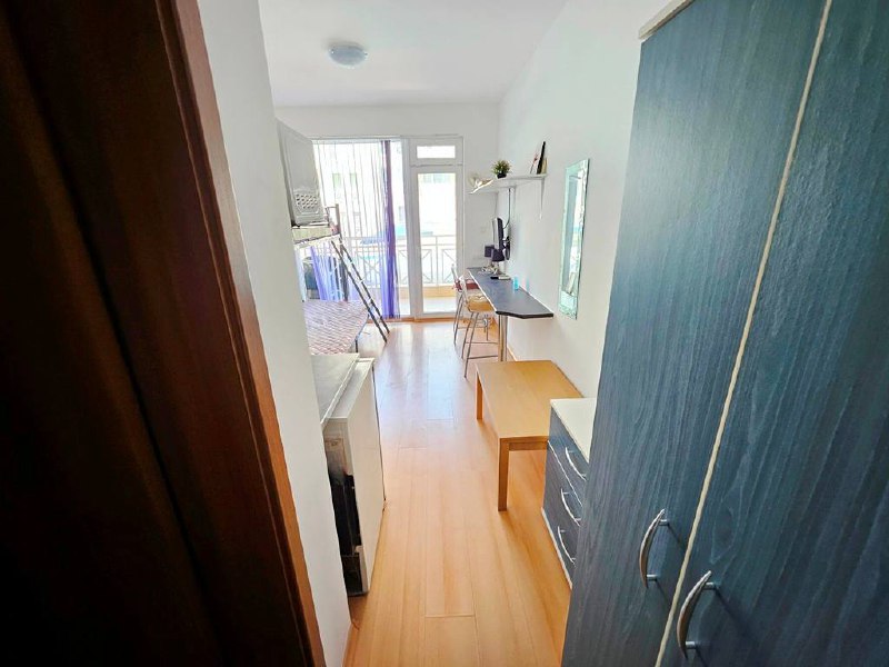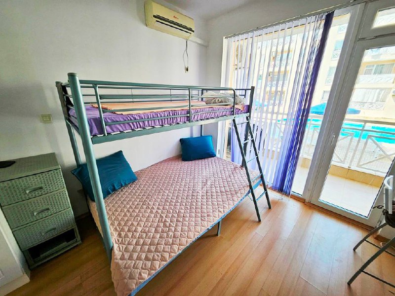 Світла, затишна студія з меблями і балконом у комплексі з басейном - чудовий варіант для тих, хто хоче придбати нерухомість на узбережжі Болгарії за вигідною ціною.
