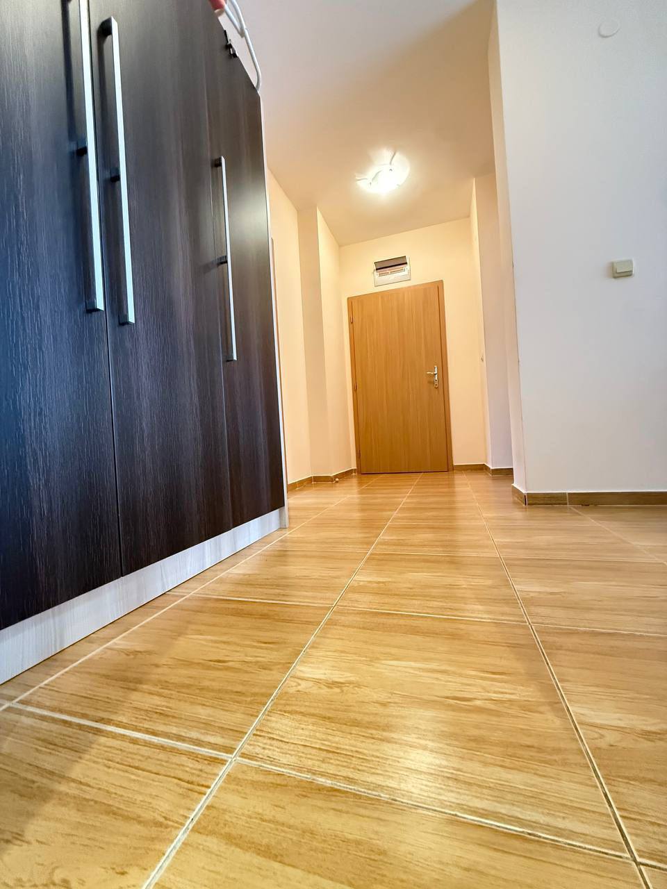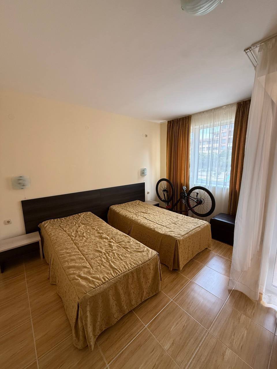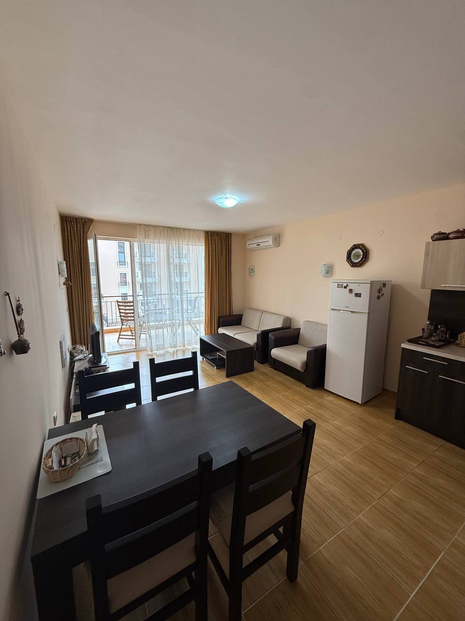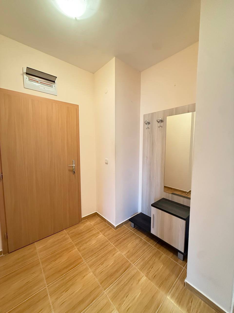Планування цієї троячки забезпечує високий рівень зручності. У квартирі передбачений просторий передпокій, який дозволяє грамотно розподілити зону зберігання і вхідний простір. Дві повноцінні спальні розташовані таким чином, щоб забезпечити приватність мешканців. Вітальня має хорошу площу і підходить для облаштування як зони відпочинку, так і повноцінної їдальні. Наявність двох санвузлів - значна перевага в повсякденному використанні. Обидва санвузли обладнані ваннами, що рідко зустрічається в болгарських курортних комплексах і підкреслює комфорт цієї пропозиції.
