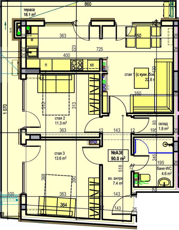 Pomorie Building, Поморіє - трикімнатна квартира 103,10 м² на останньому поверсі без такси підтримки