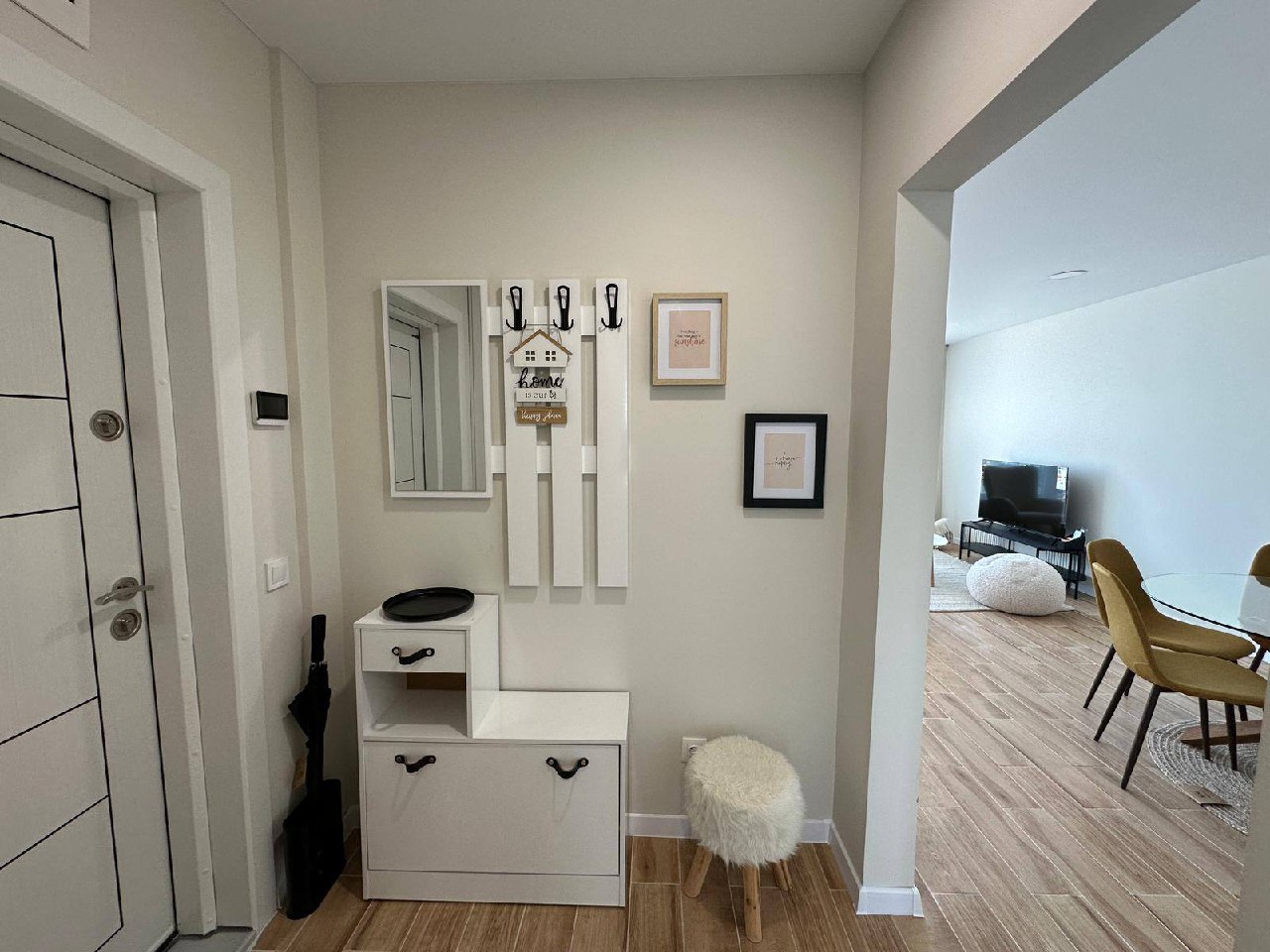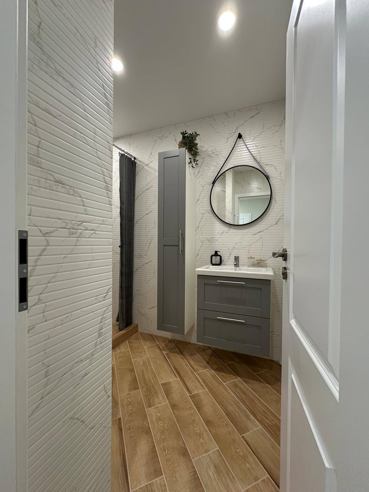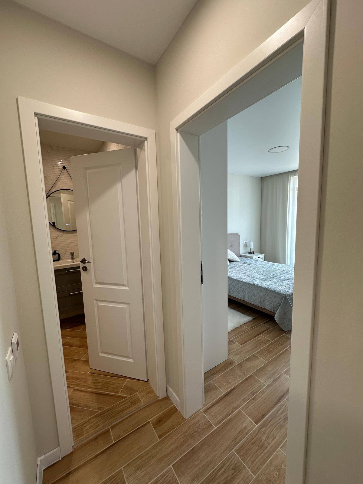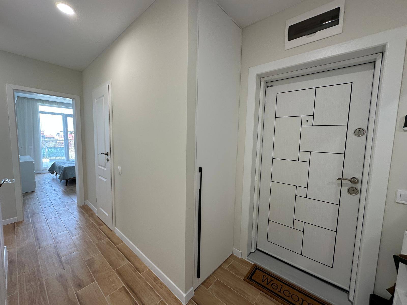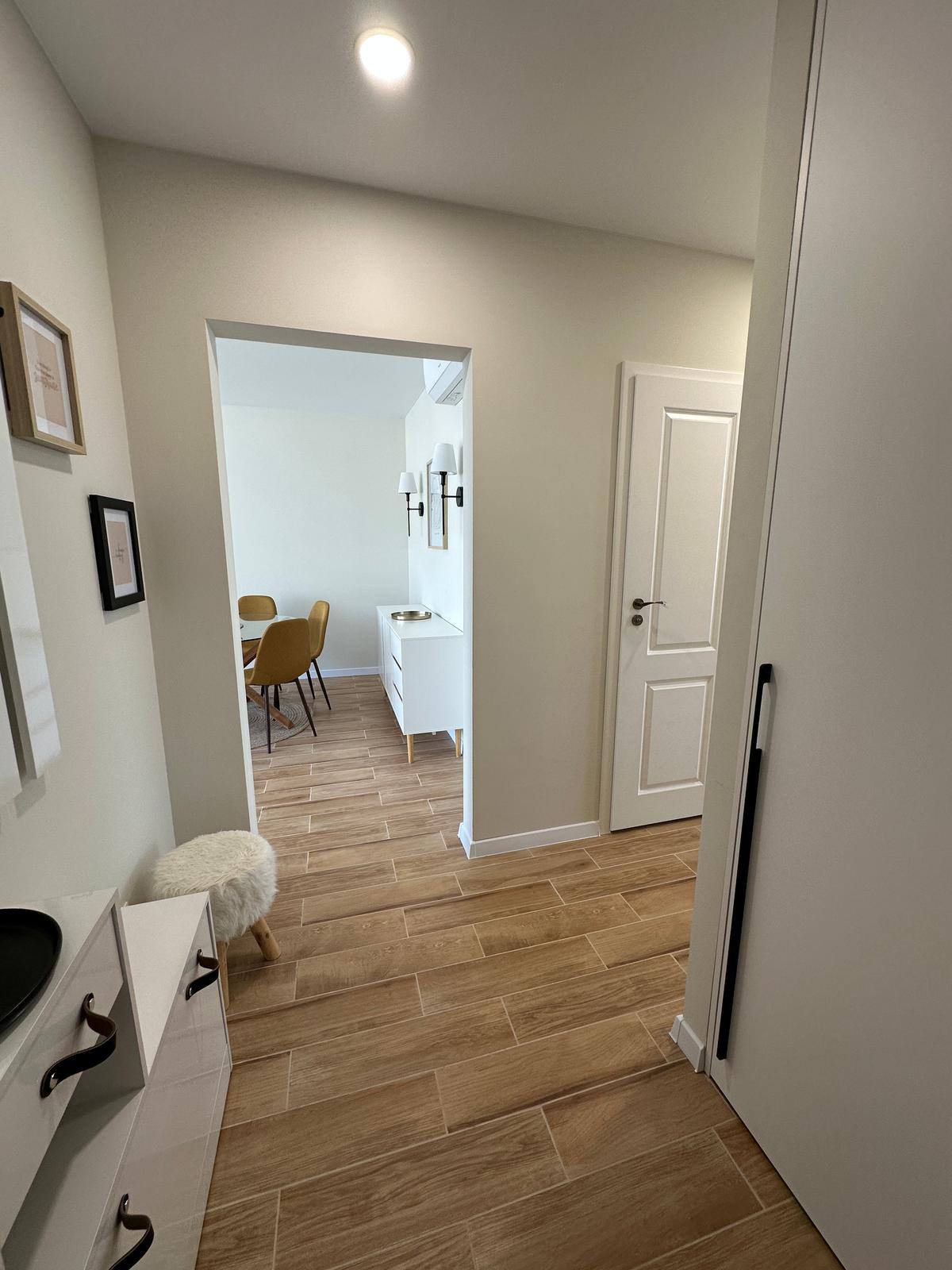 - Просторий коридор із теплою підлогою, з якого є доступ до гостьової ванної кімнати.