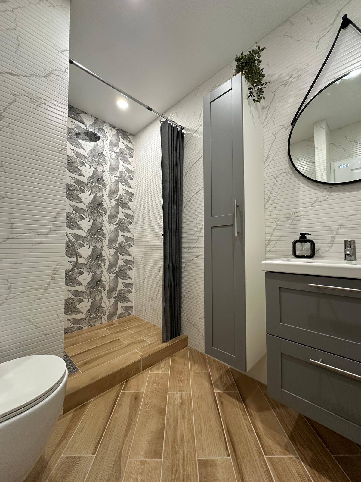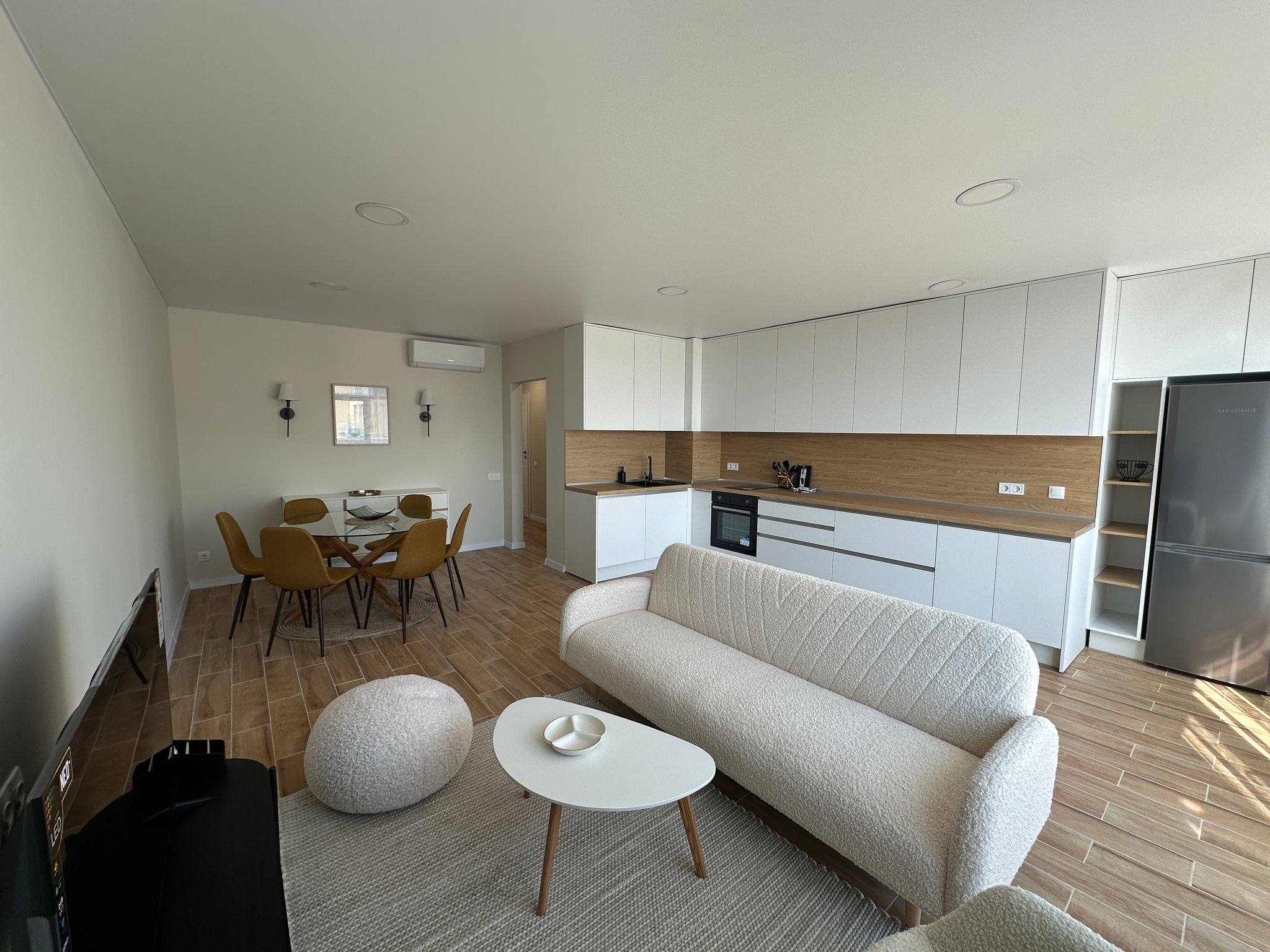 В апартаменті встановлені кондиціонери зима-літо, а також теплі підлоги в ключових зонах - це забезпечує стабільний комфорт у будь-яку погоду. У кухні - вбудована техніка та меблі, виконані на замовлення. Усі приміщення продумані до дрібниць, створюючи відчуття сучасного та функціонального простору.